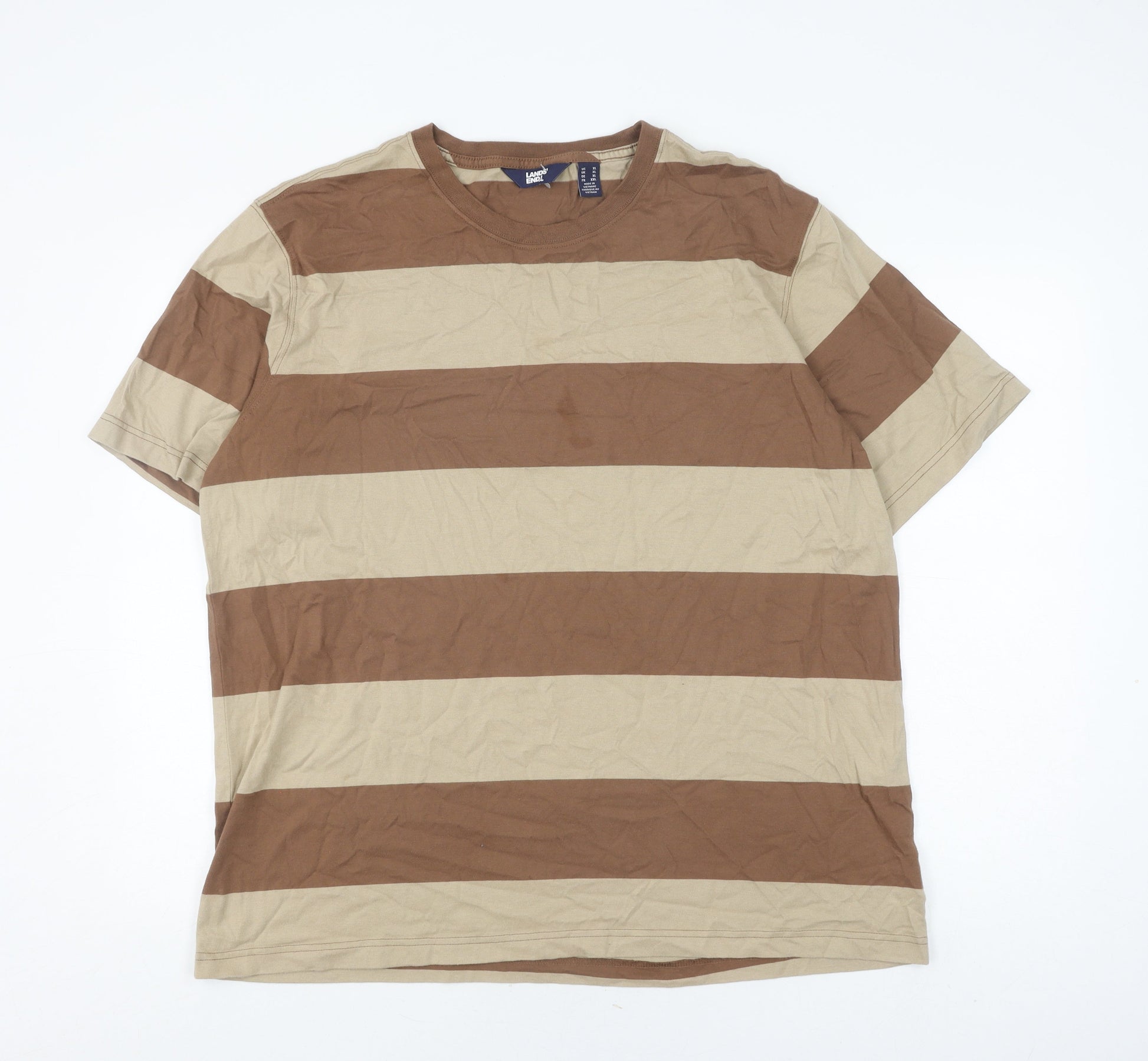 Lands' End Men's Beige Brown Striped XL T-Shirt