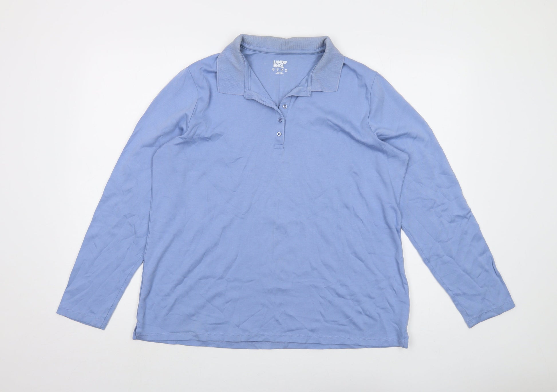 Lands' End Mens Blue Cotton Polo Size XL Collared Button