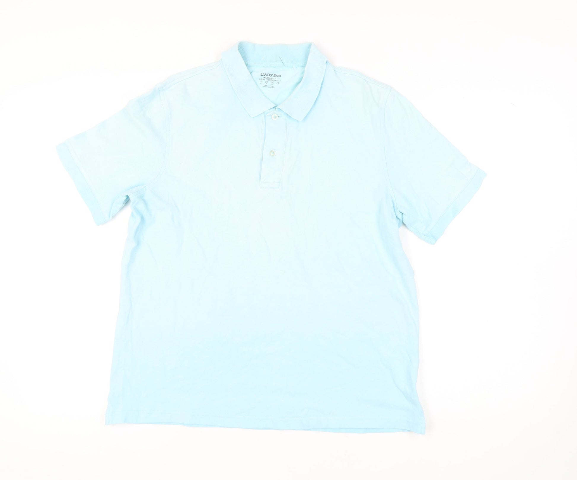Lands' End Men's Blue Polo Shirt, M, Casual, Cotton