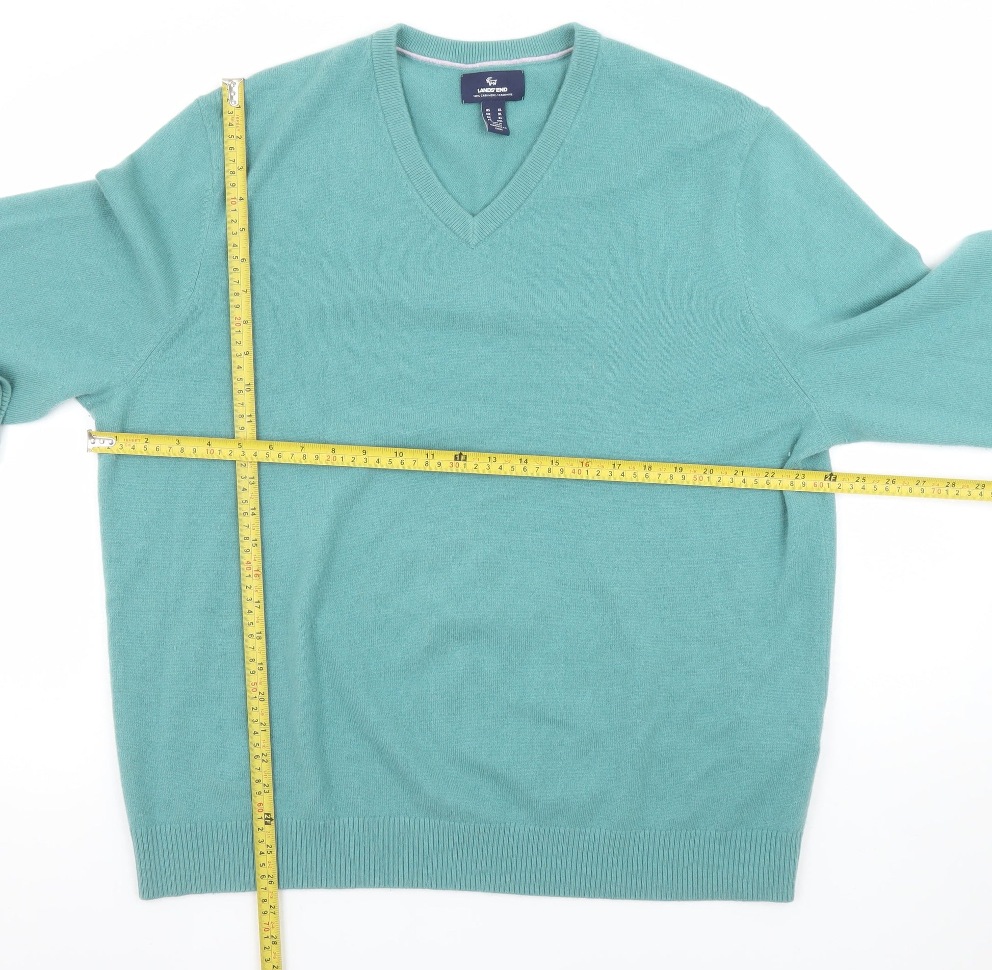 Lands' End Men's Green XL Cashmere V-Neck Jumper