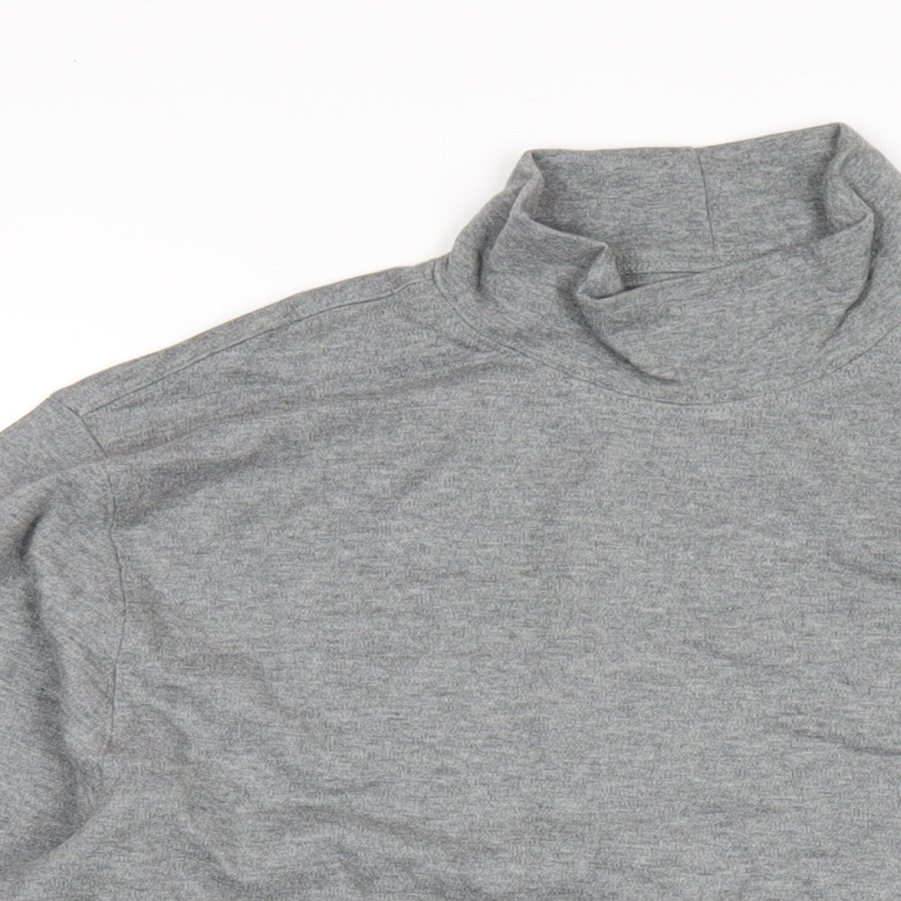 Lands' End Mens Grey Cotton T-Shirt Size M Mock Neck