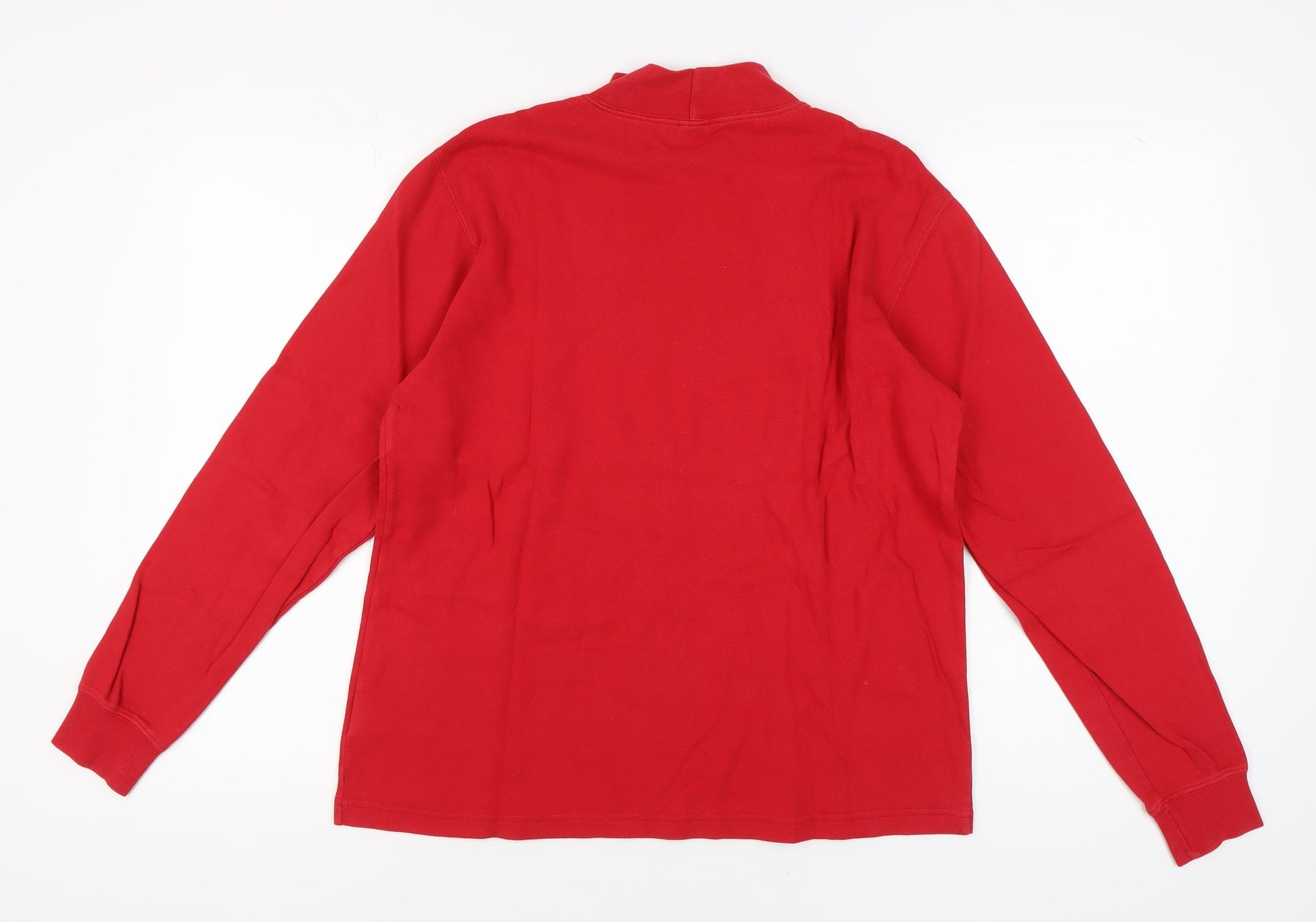 Lands' End Men's Red High Neck Long Sleeve T-Shirt M