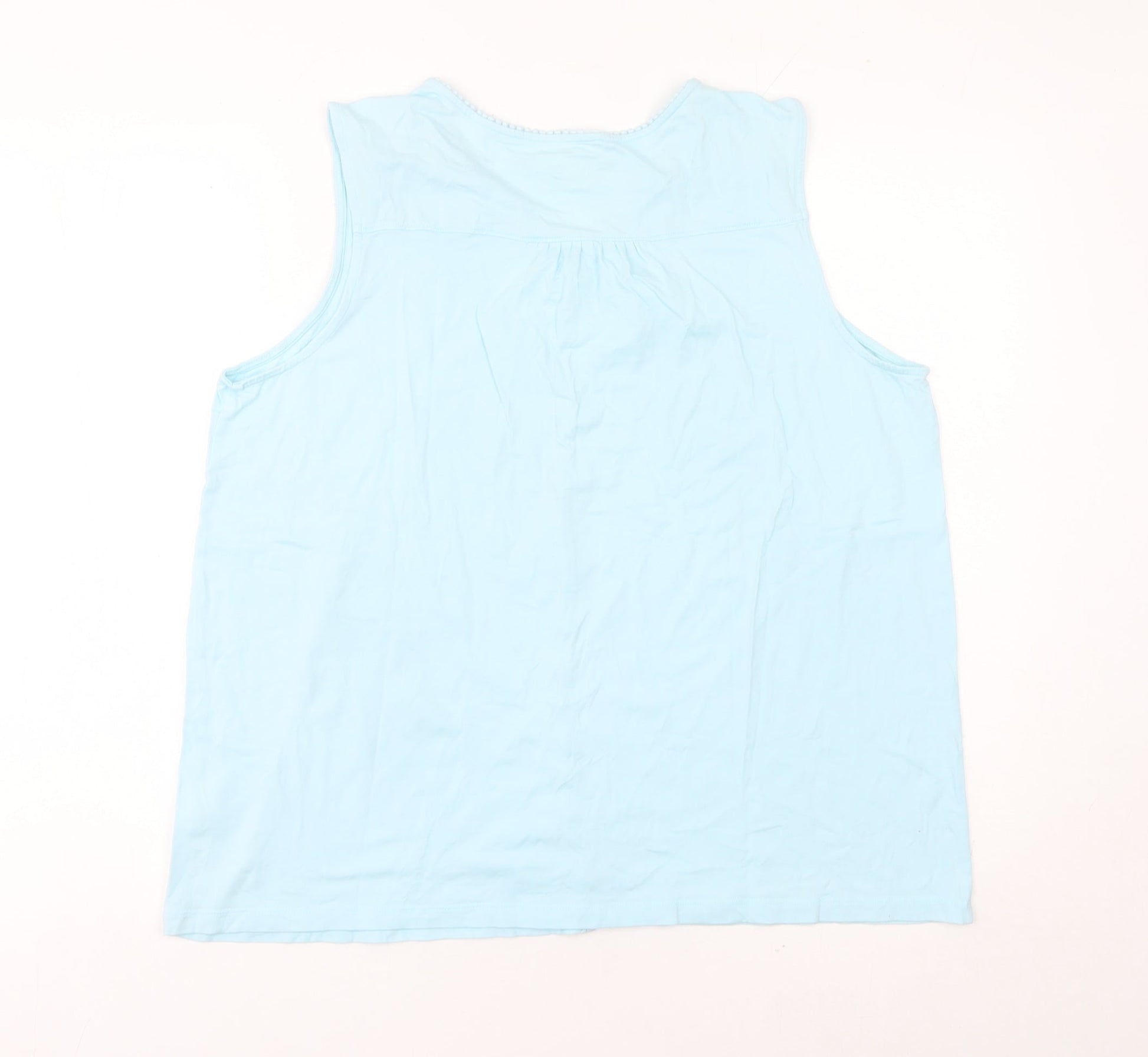 Lands' End Women Blue XL Cotton Sleeveless Tank Top V-Neck
