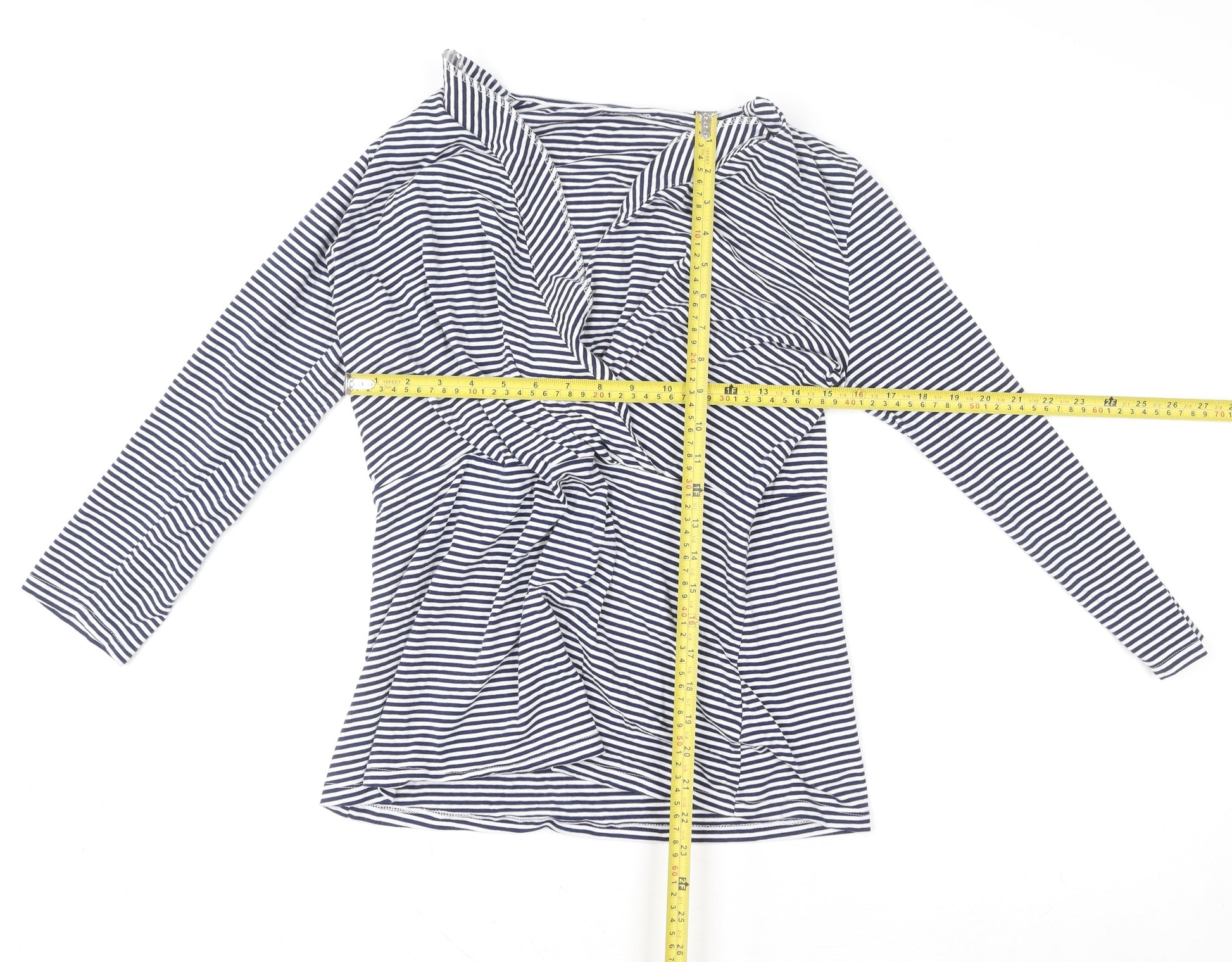 Lands’ End Women’s Blue Striped Wrap Jersey Long Sleeve Top UK 10