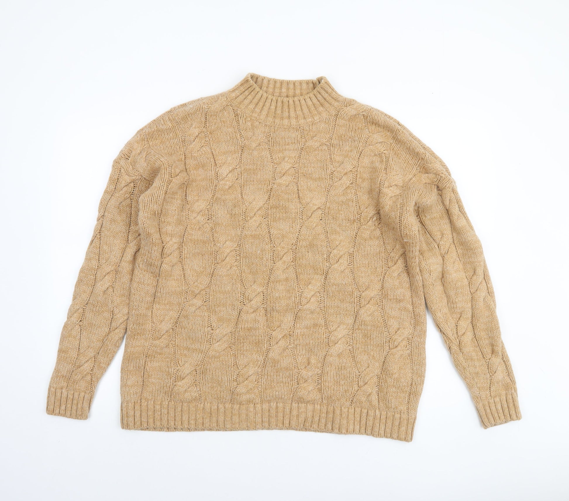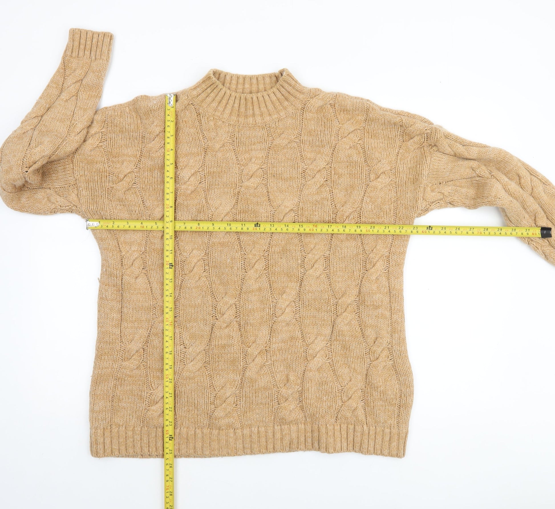 Lands' End Women's Beige Cable-Knit Mock Neck Jumper M
