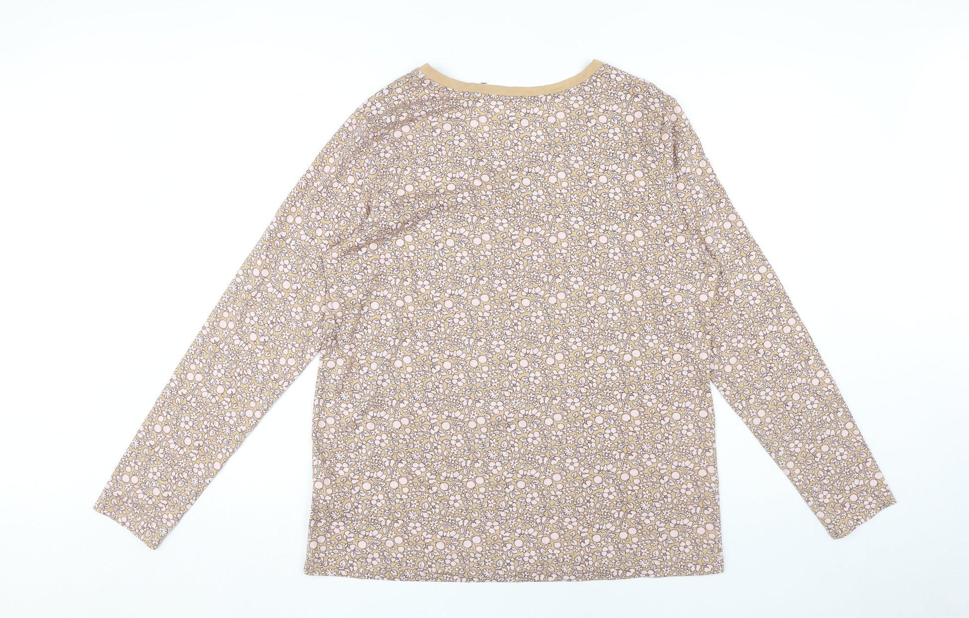 Lands' End Women's Beige Floral Long Sleeve T-Shirt L