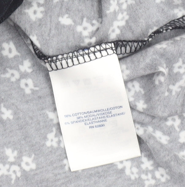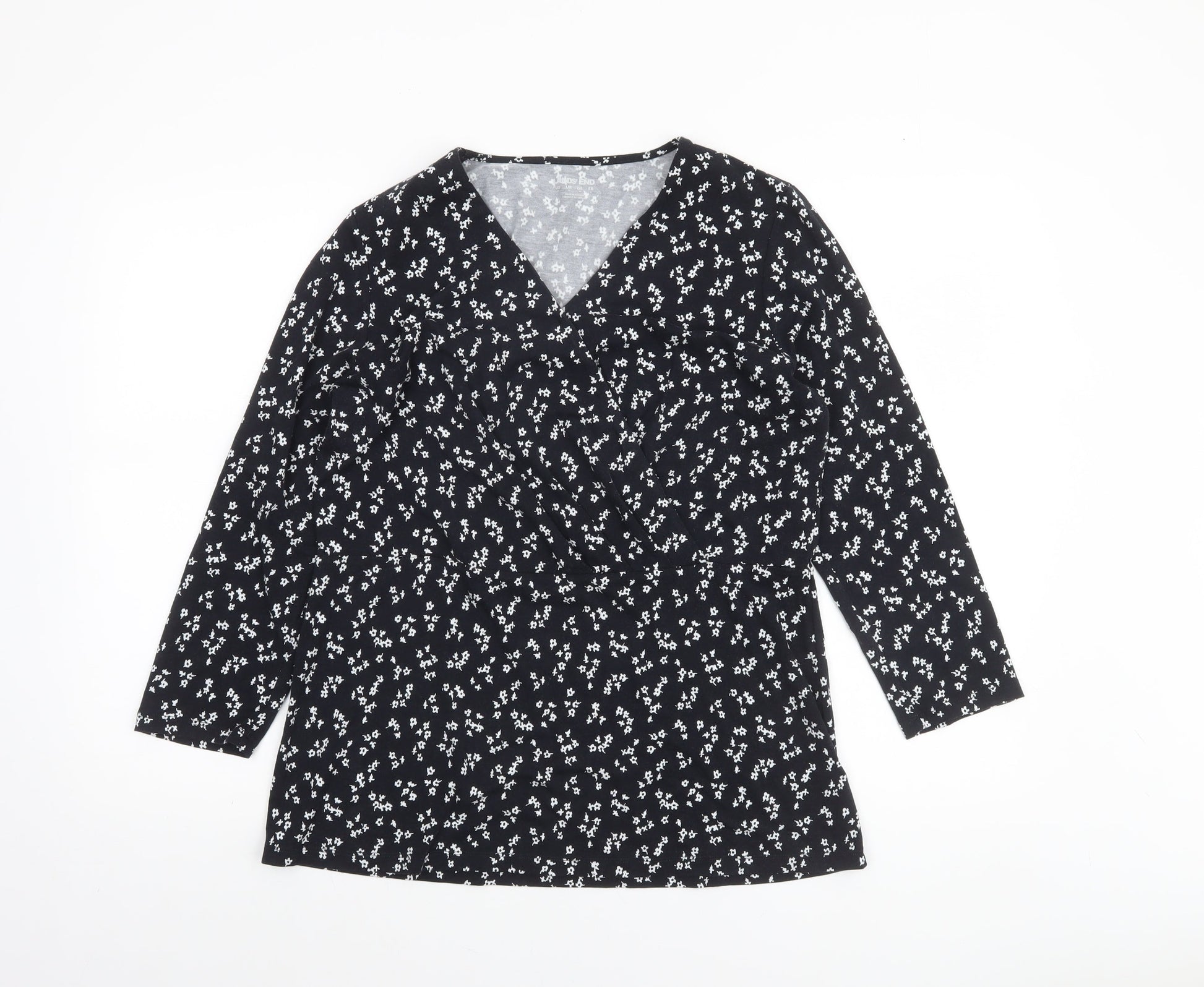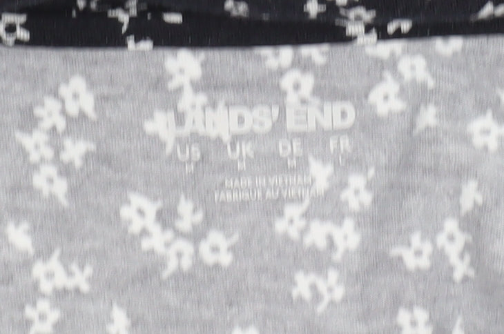 Lands' End Women's Black Floral Wrap Jersey Long Sleeve Top M