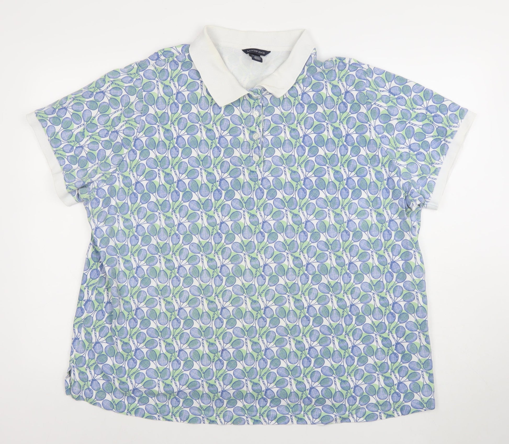 Lands' End Women's Blue Green Polo Shirt UK 24/26 Classic Fit