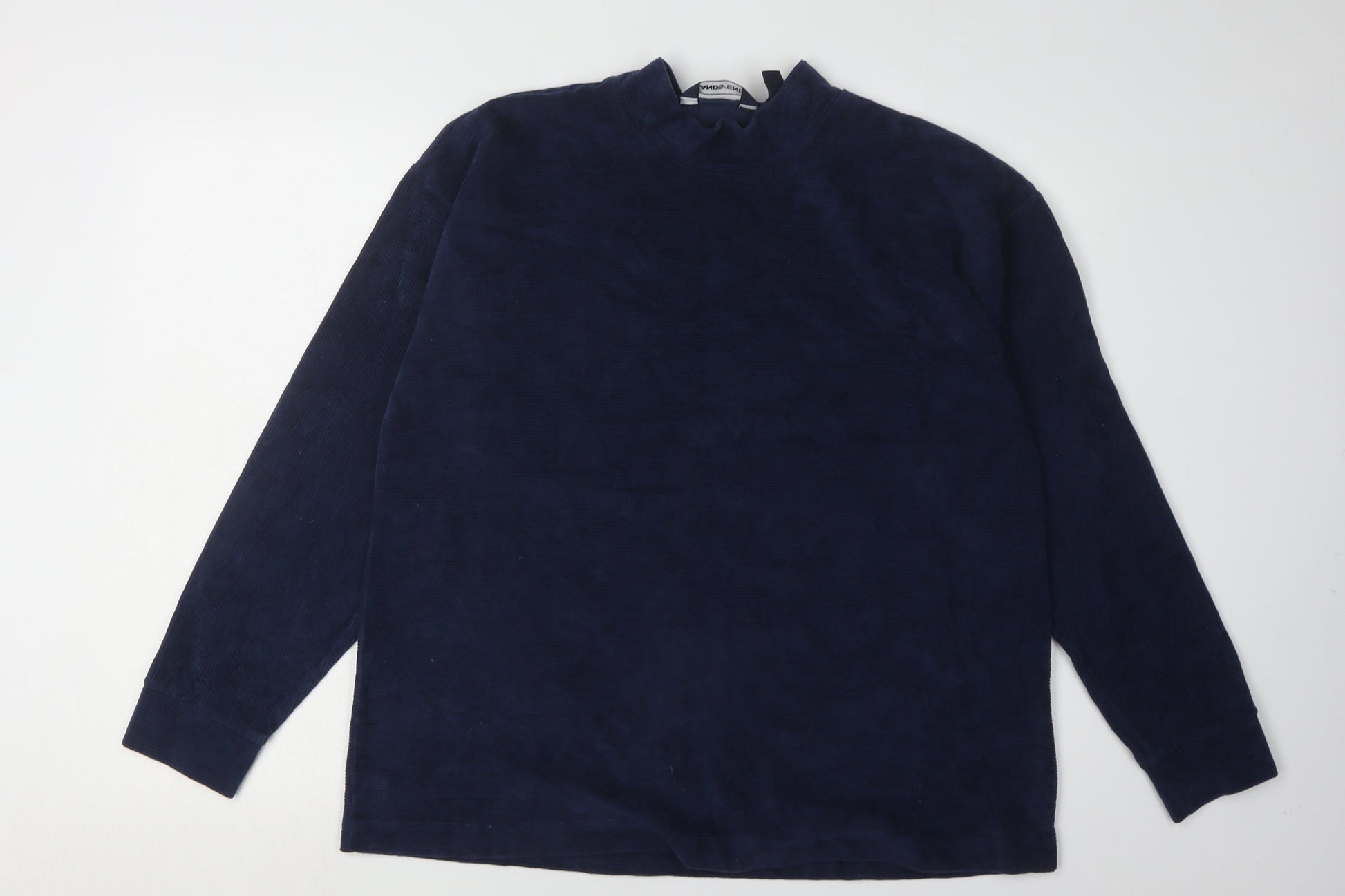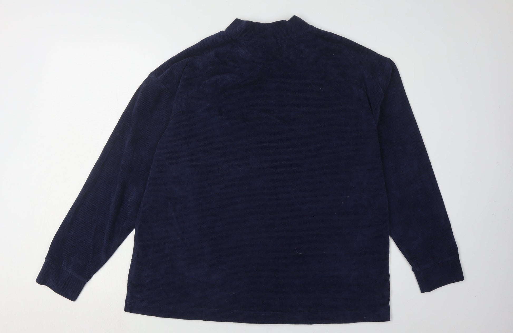 Lands' End Women's Blue Mock Neck Jumper, Size L