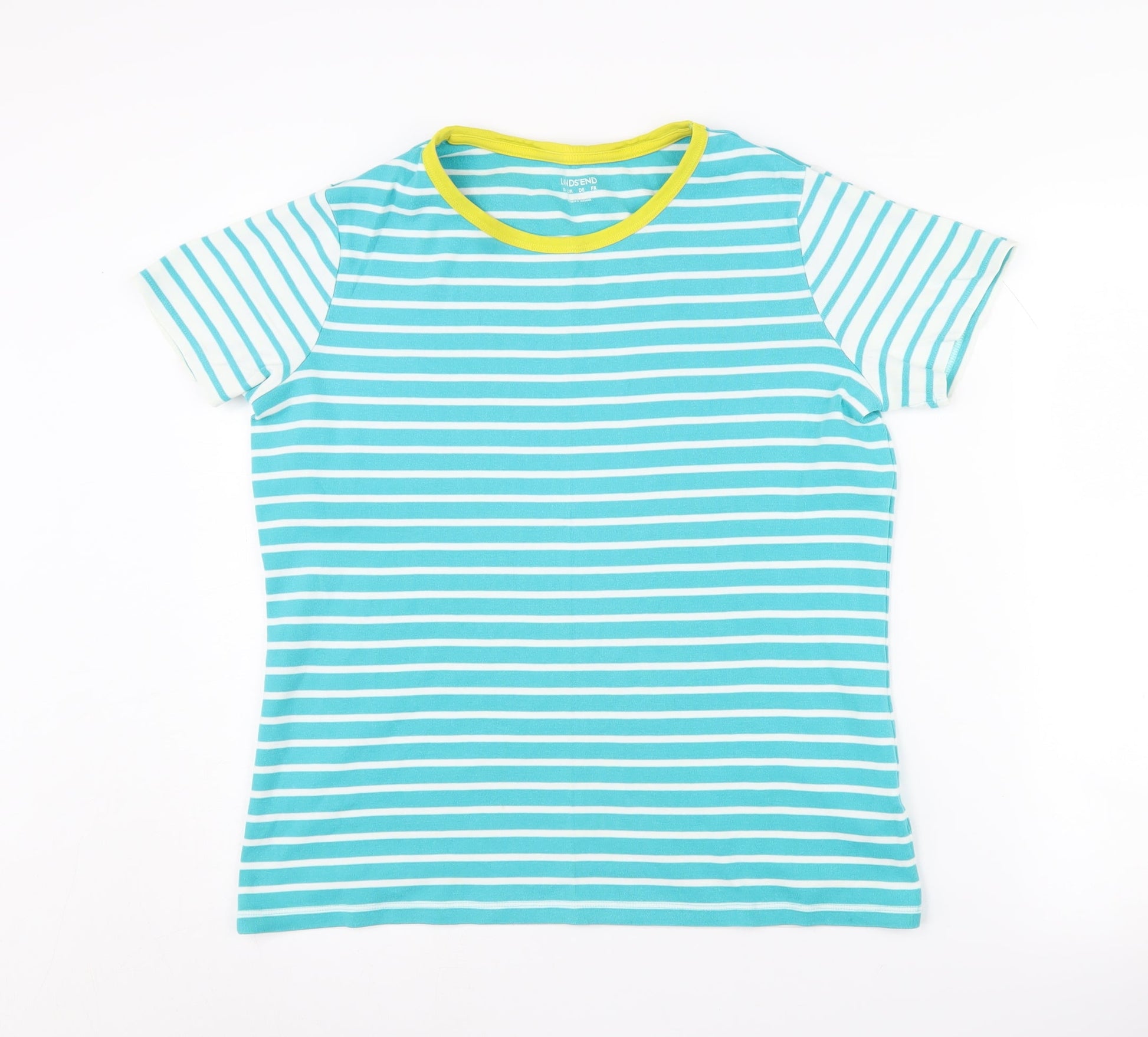 Lands' End Women's Blue Striped Ringer T-Shirt M