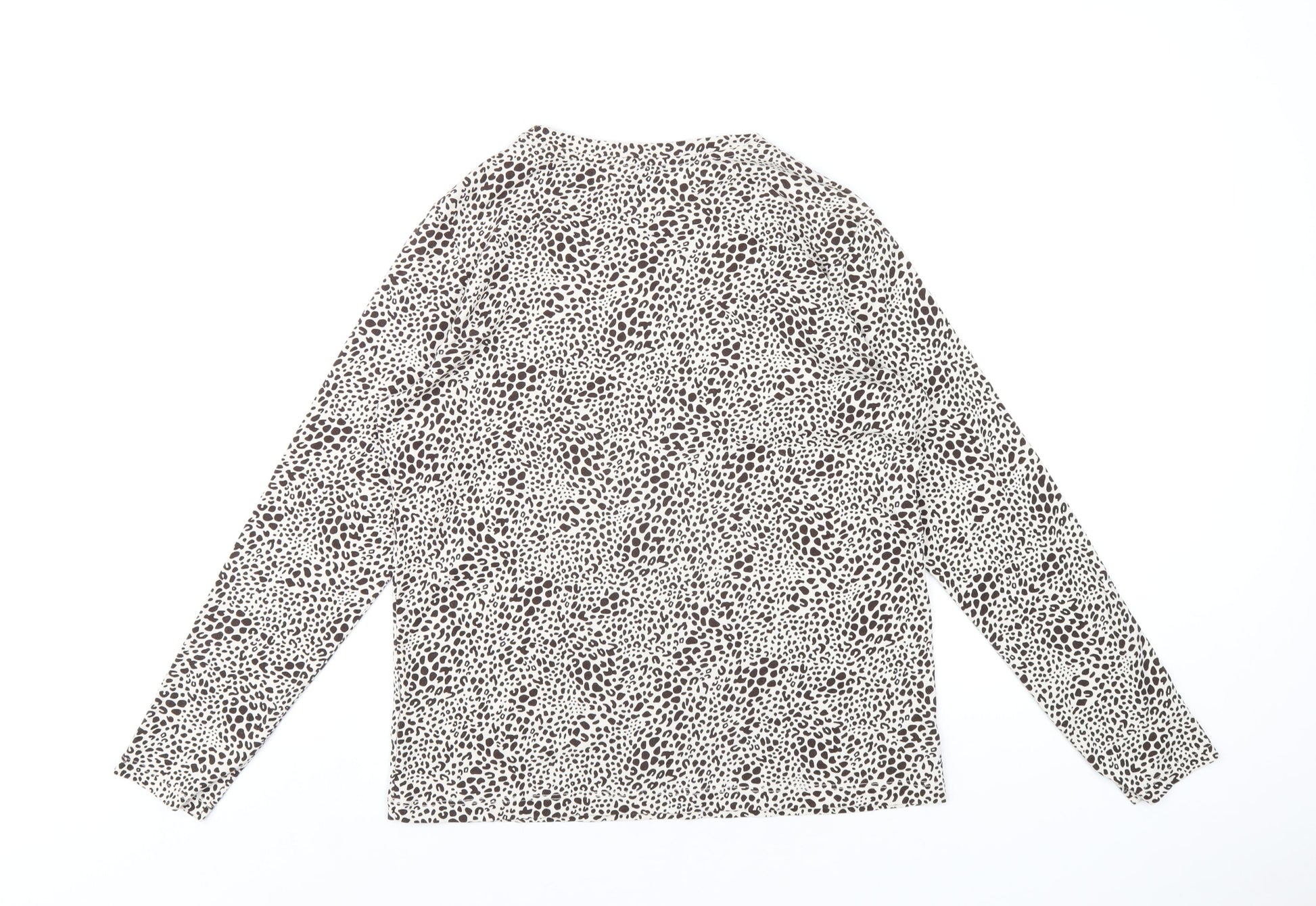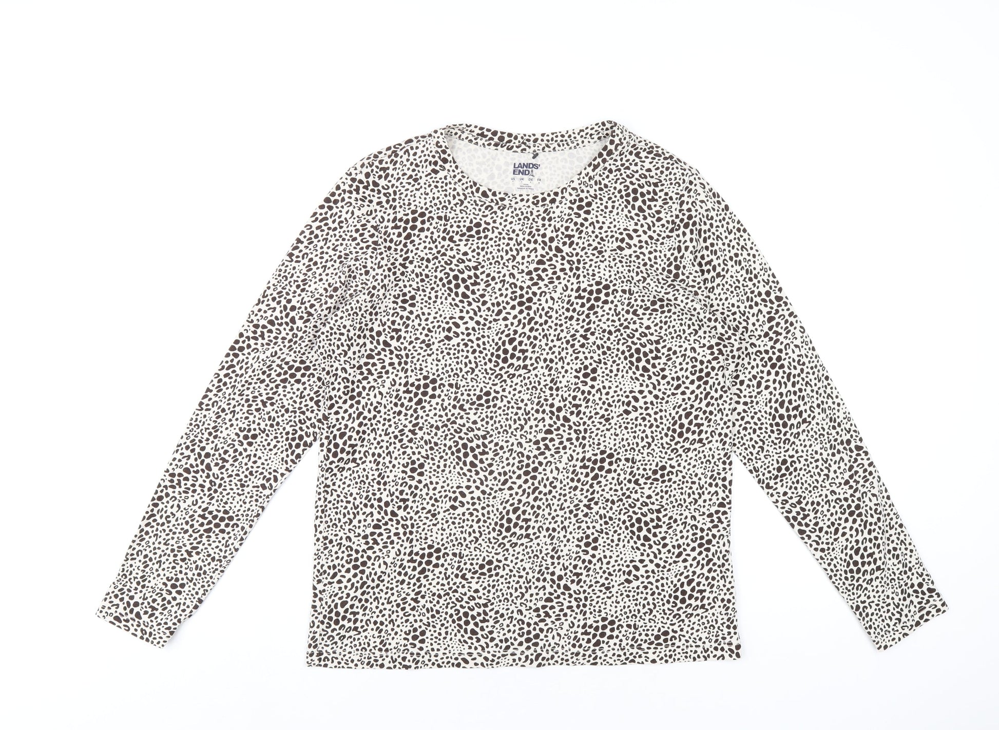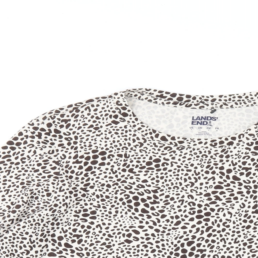 Lands' End Womens Brown Geometric Cotton Basic T-Shirt Size S Round Neck