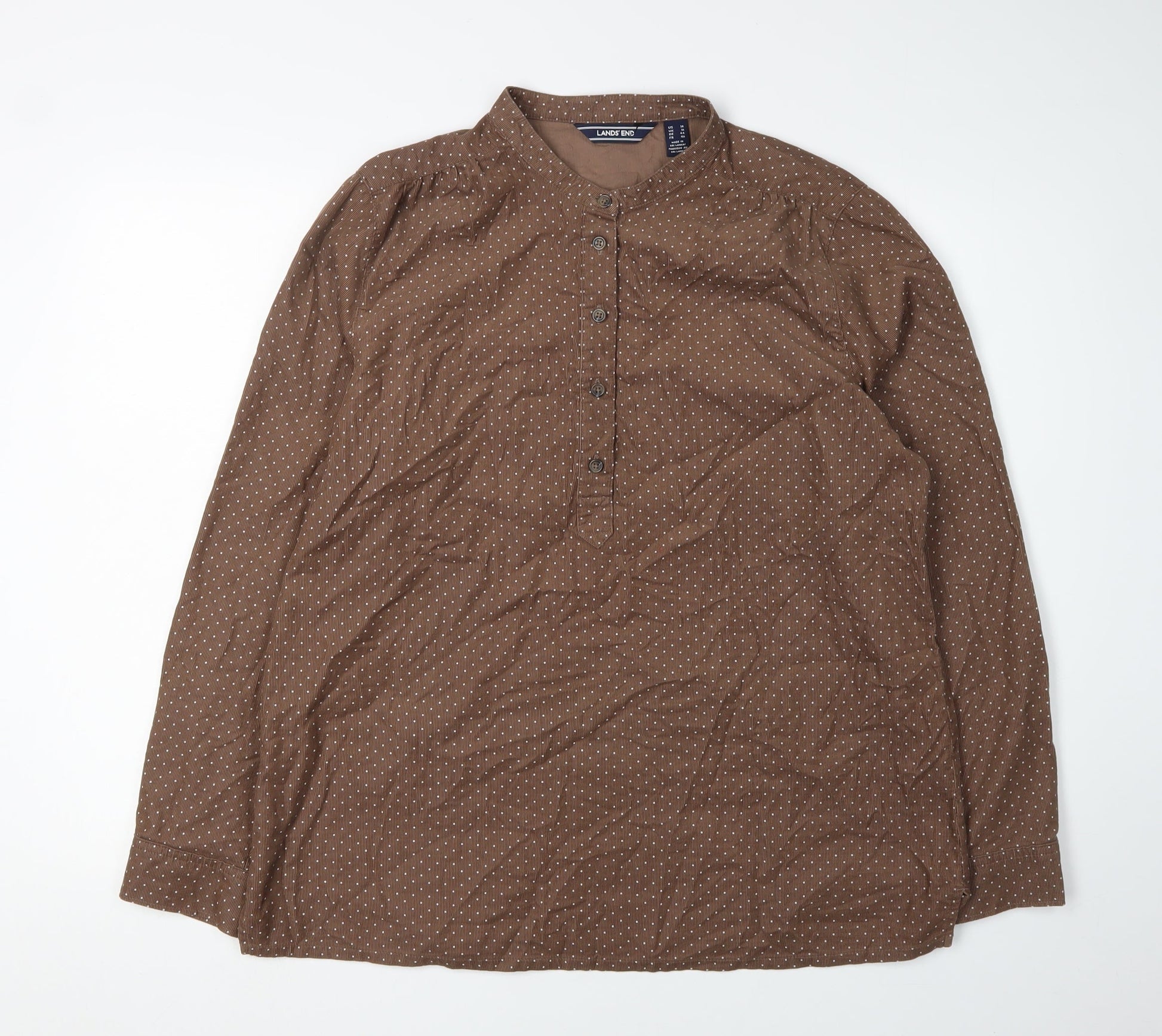 Lands' End Women's Brown Polka Dot Button-Up Shirt Size 16