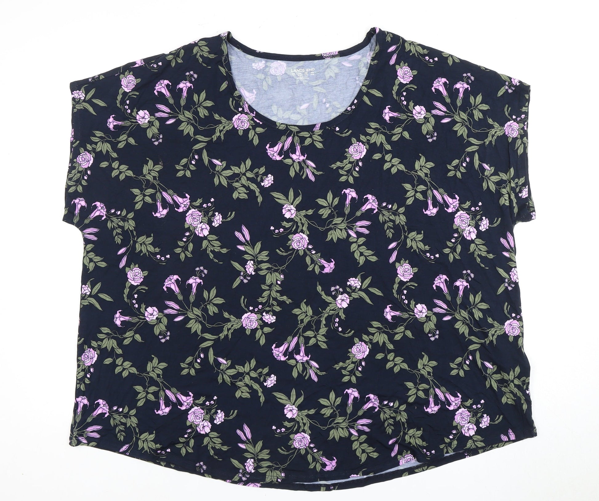 Lands' End Women's Floral T-Shirt - Size 18 Multicoloured