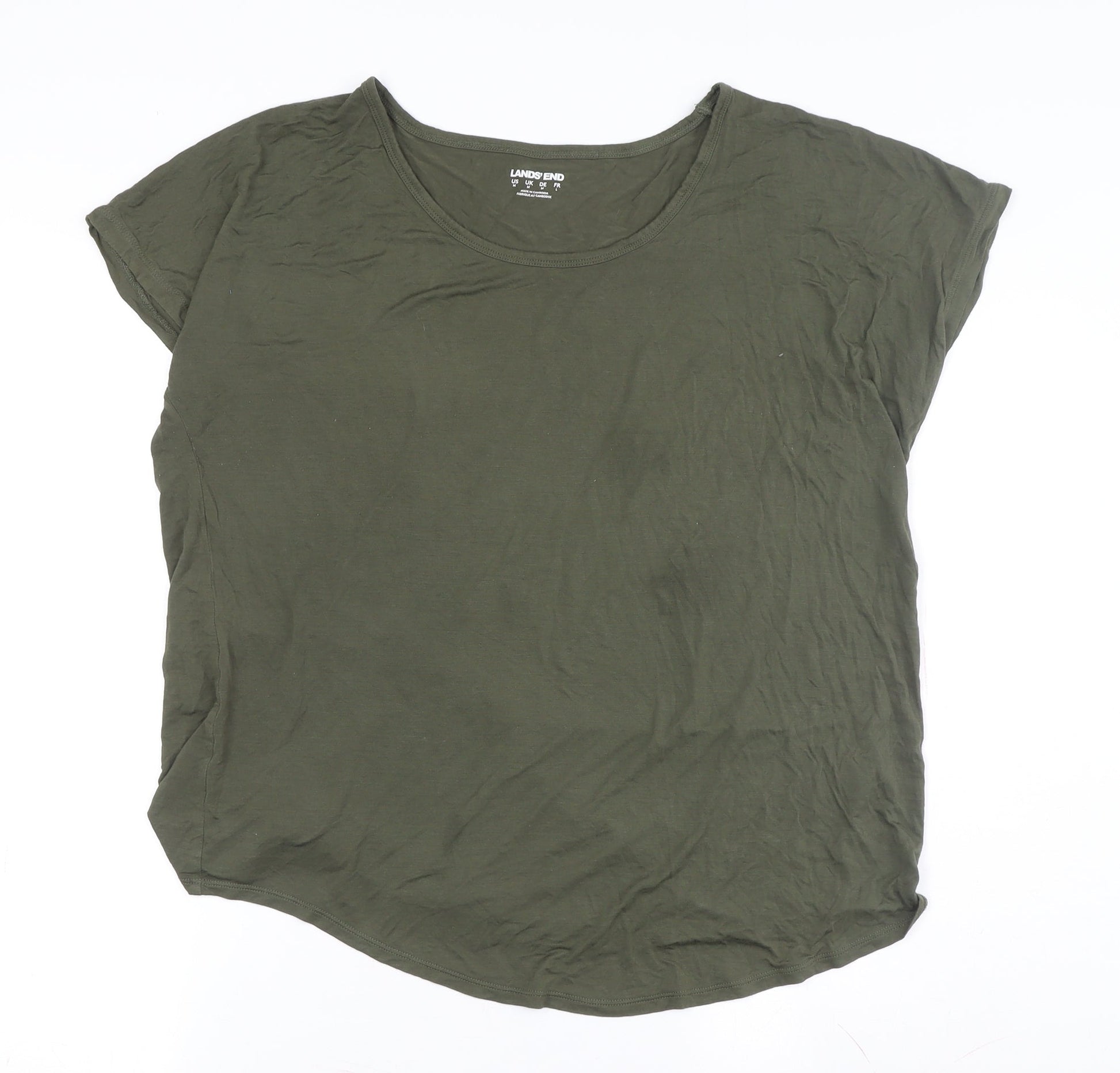 Lands' End Women's Green Basic T-Shirt, M, Summer Casual