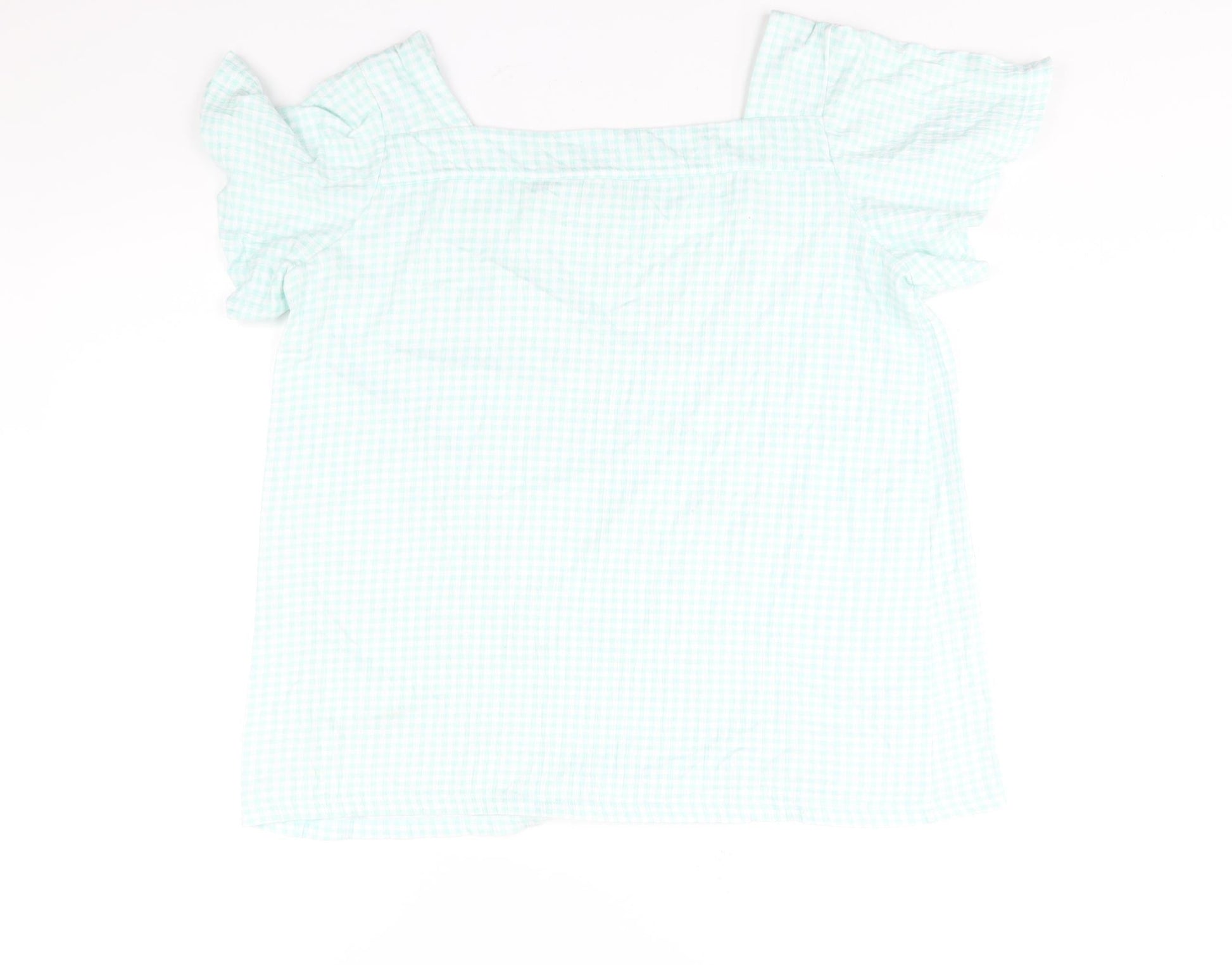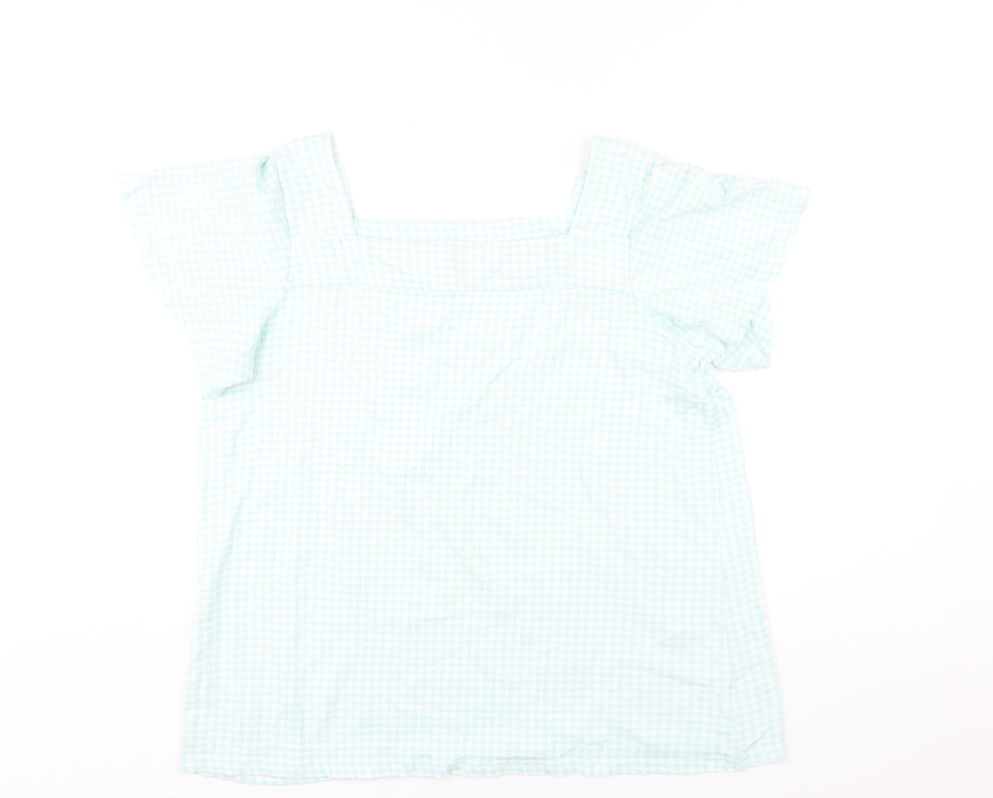 Lands' End Womens Green Check Cotton Basic Blouse Size M Square Neck