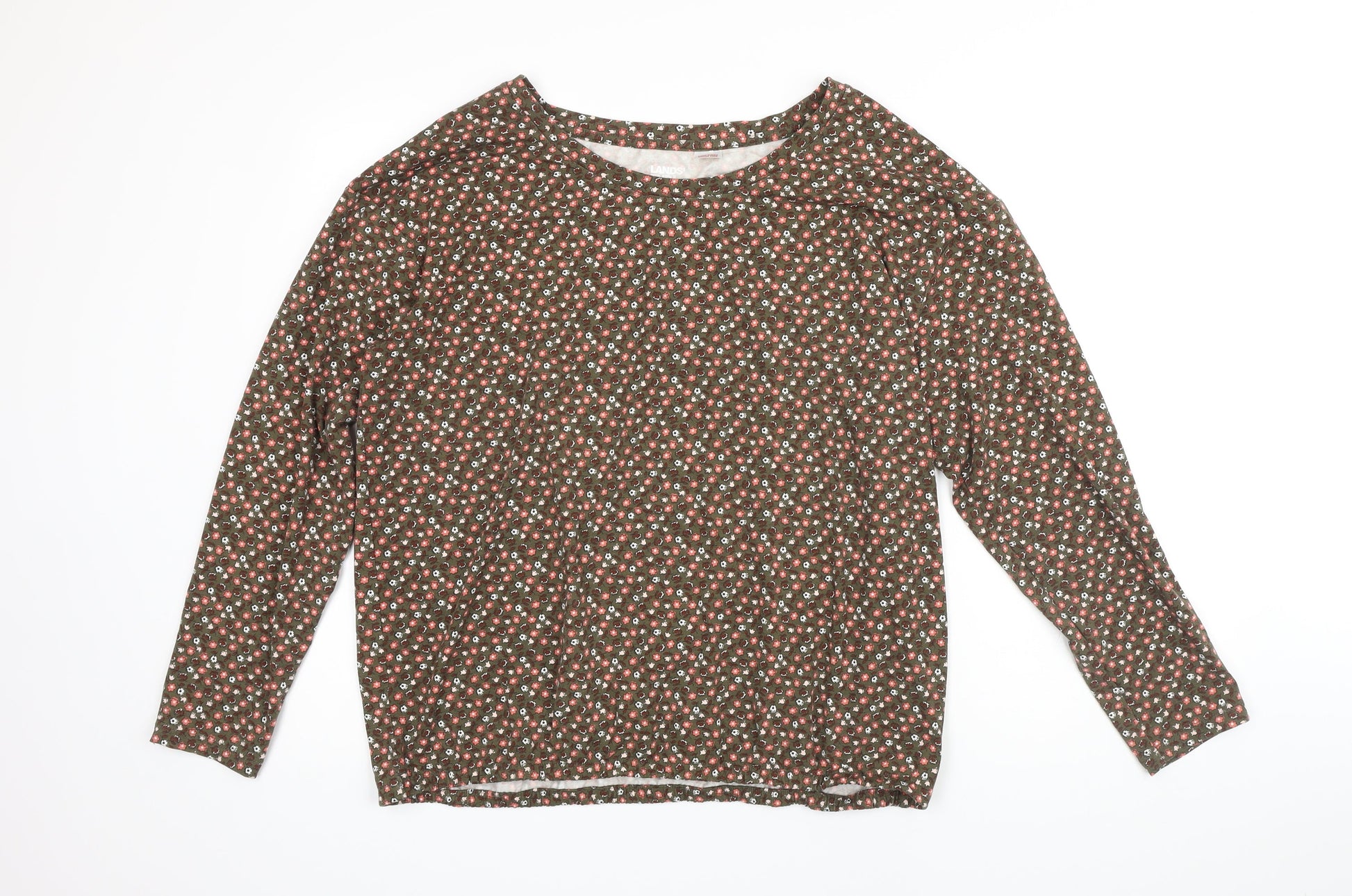Lands End Womens Green Floral Polyester Jersey Blouse Size XL Scoop Neck