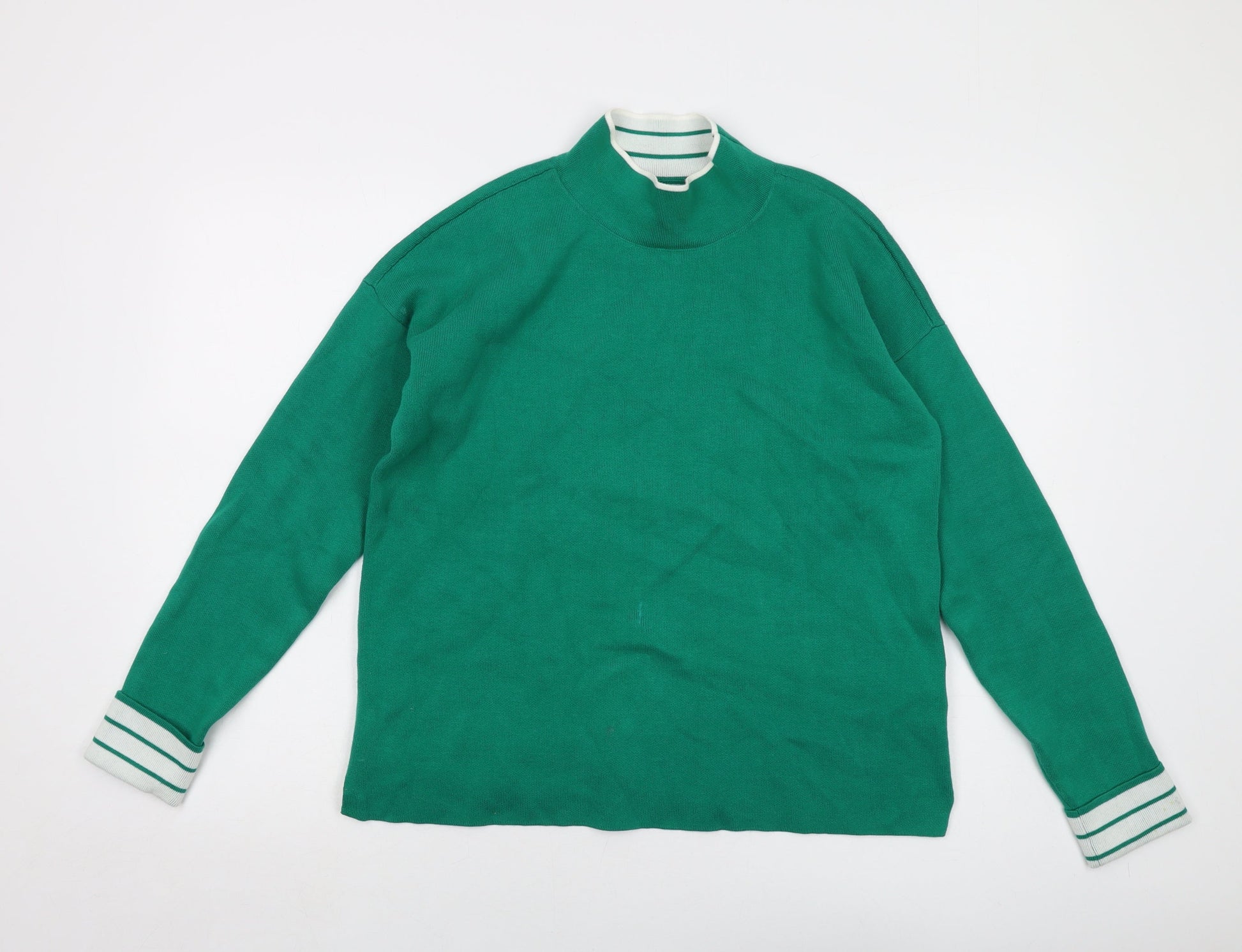 Lands' End Womens Green Mock Neck Cotton Pullover Jumper Size S