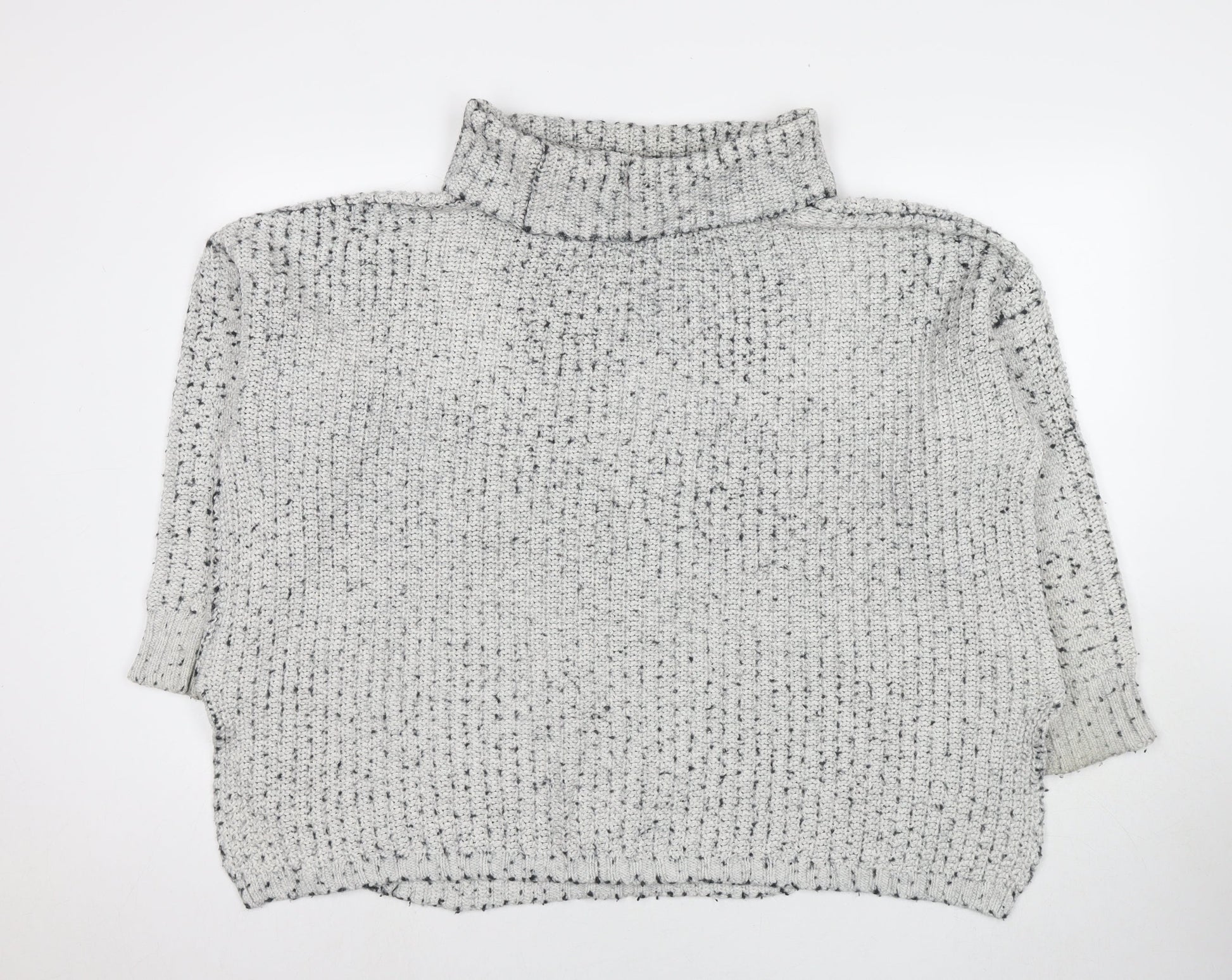 Lands' End Womens Grey Roll Neck Cotton Pullover Jumper Size L