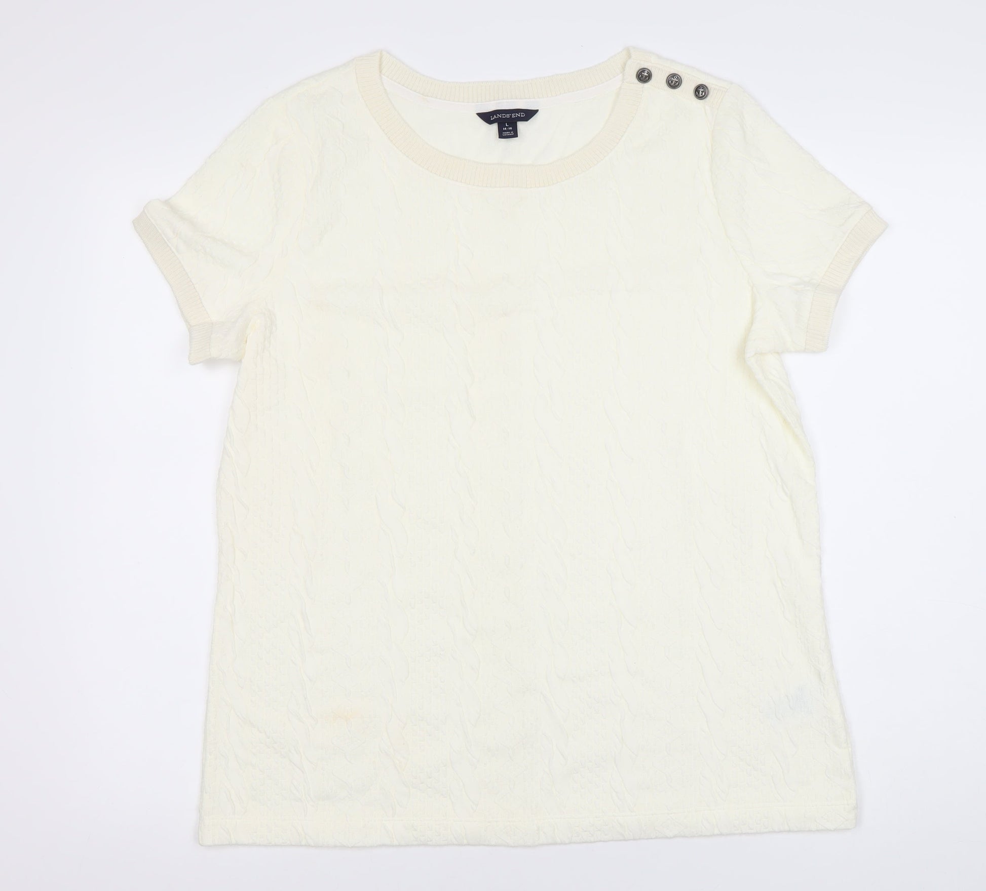 Lands' End Women's Ivory Knit Short Sleeve Top