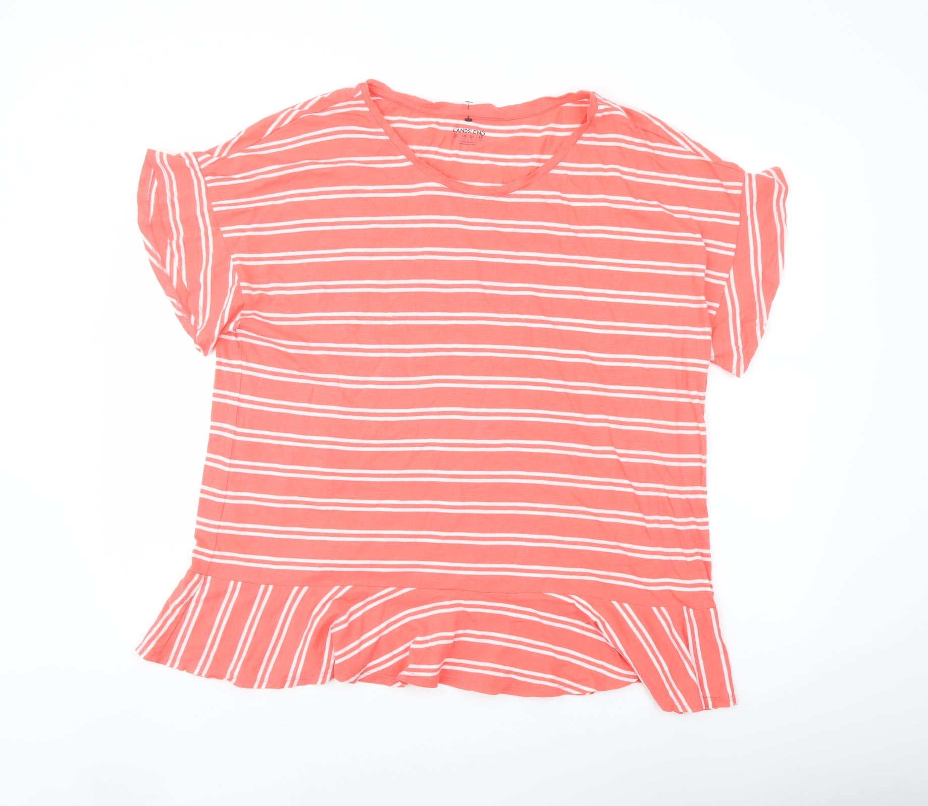 Lands' End Womens Orange Striped Cotton Basic T-Shirt Size XL Round Neck