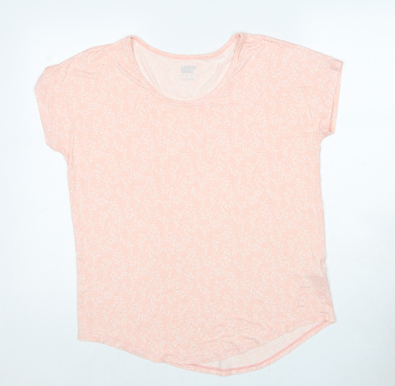 Lands' End Womens Pink Floral Viscose Basic T-Shirt Size S Round Neck
