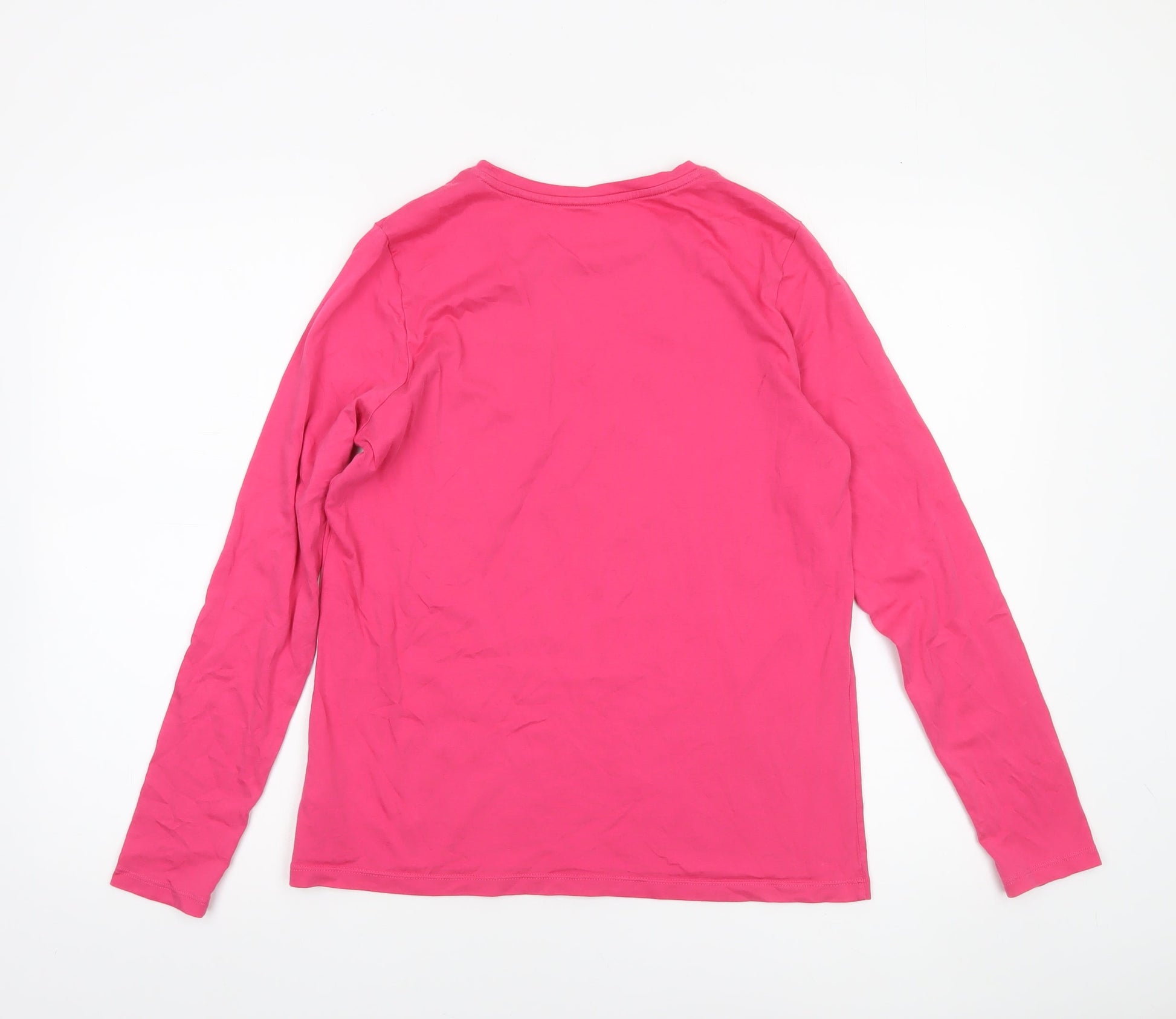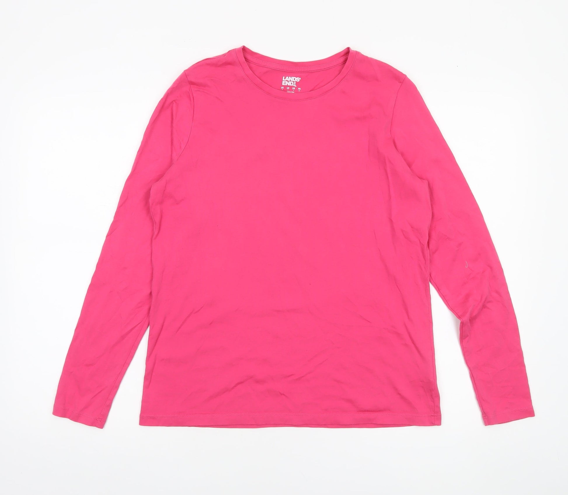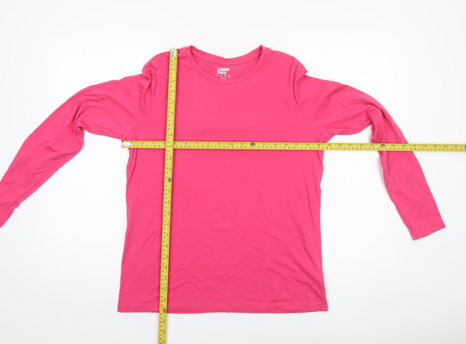 Lands' End Womens Pink Long Sleeve Basic Cotton T-Shirt Size S