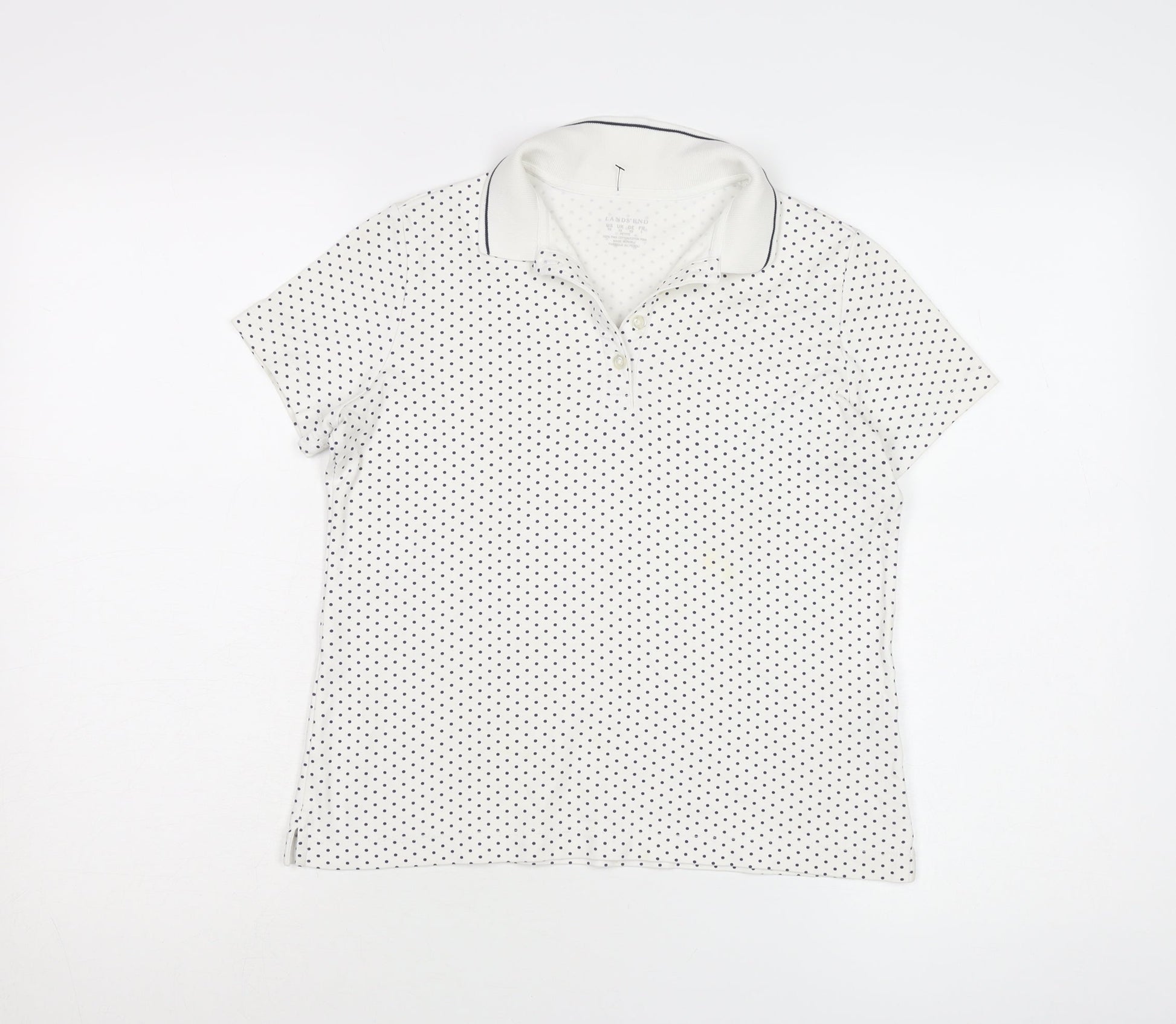 Lands' End Women's Polka Dot White Polo XS Petites