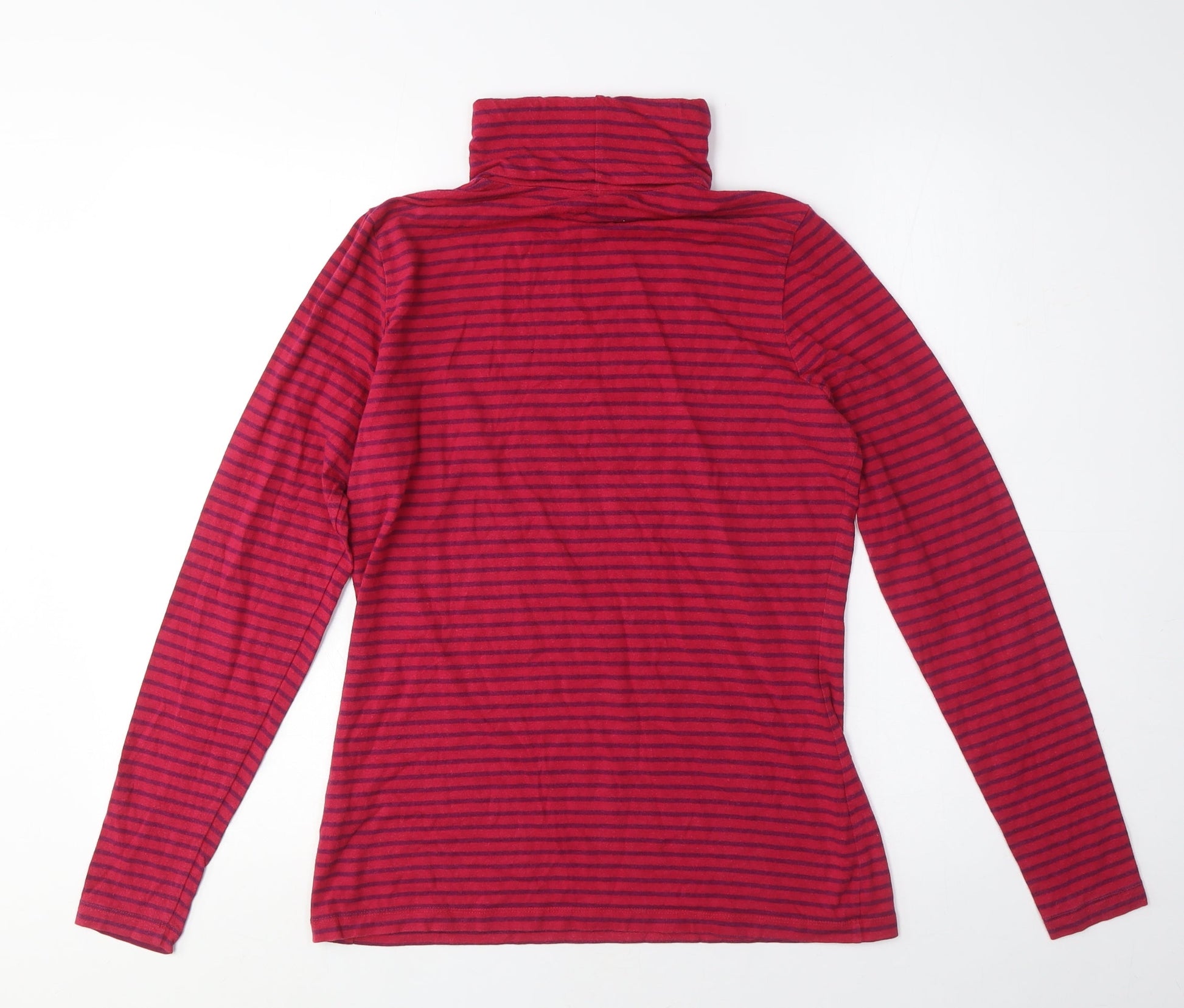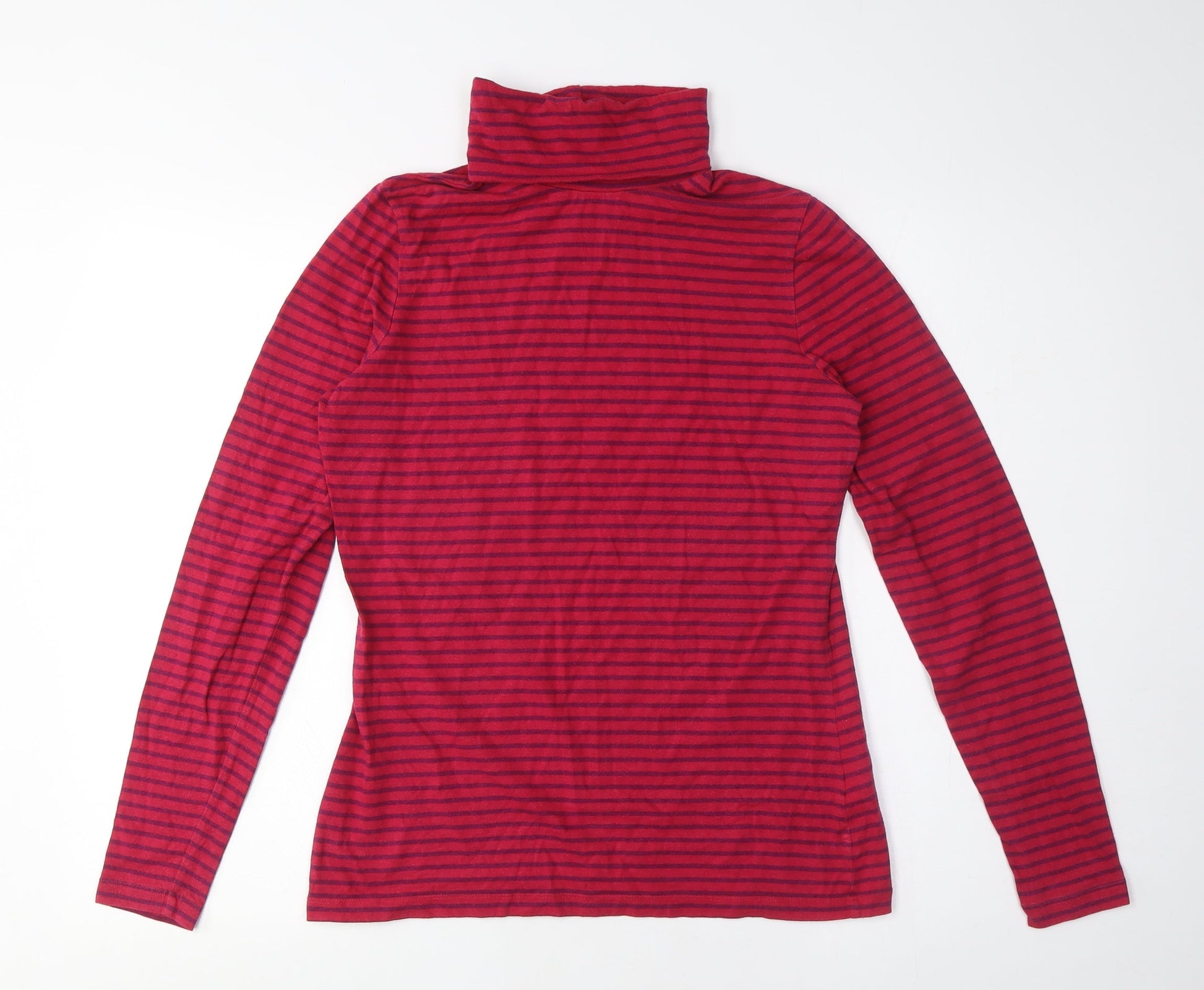 Lands' End Women's Red Mock Neck Striped T-Shirt M