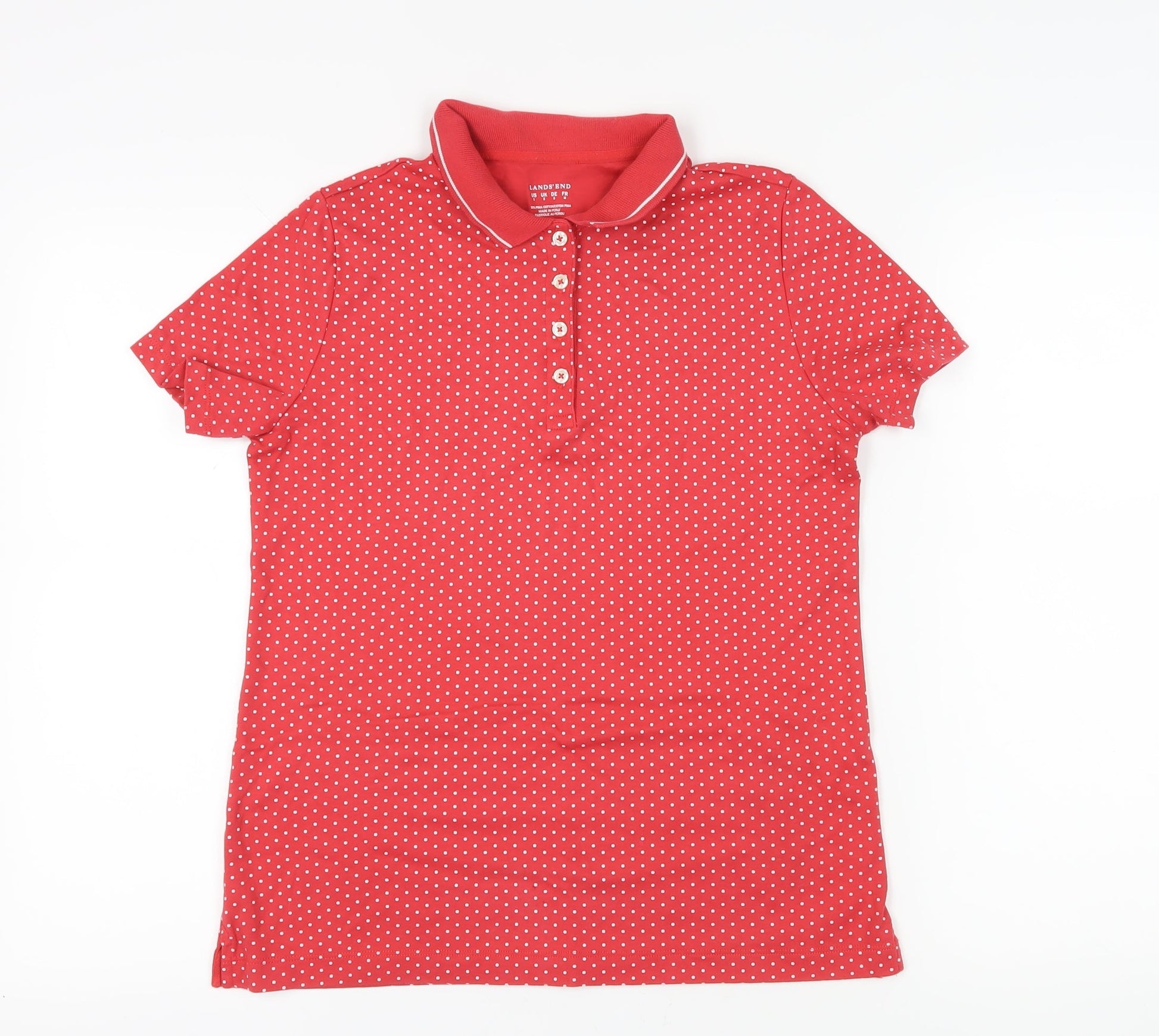 Lands' End Women's Red Polka Dot Polo Shirt, Size S, Casual Wear