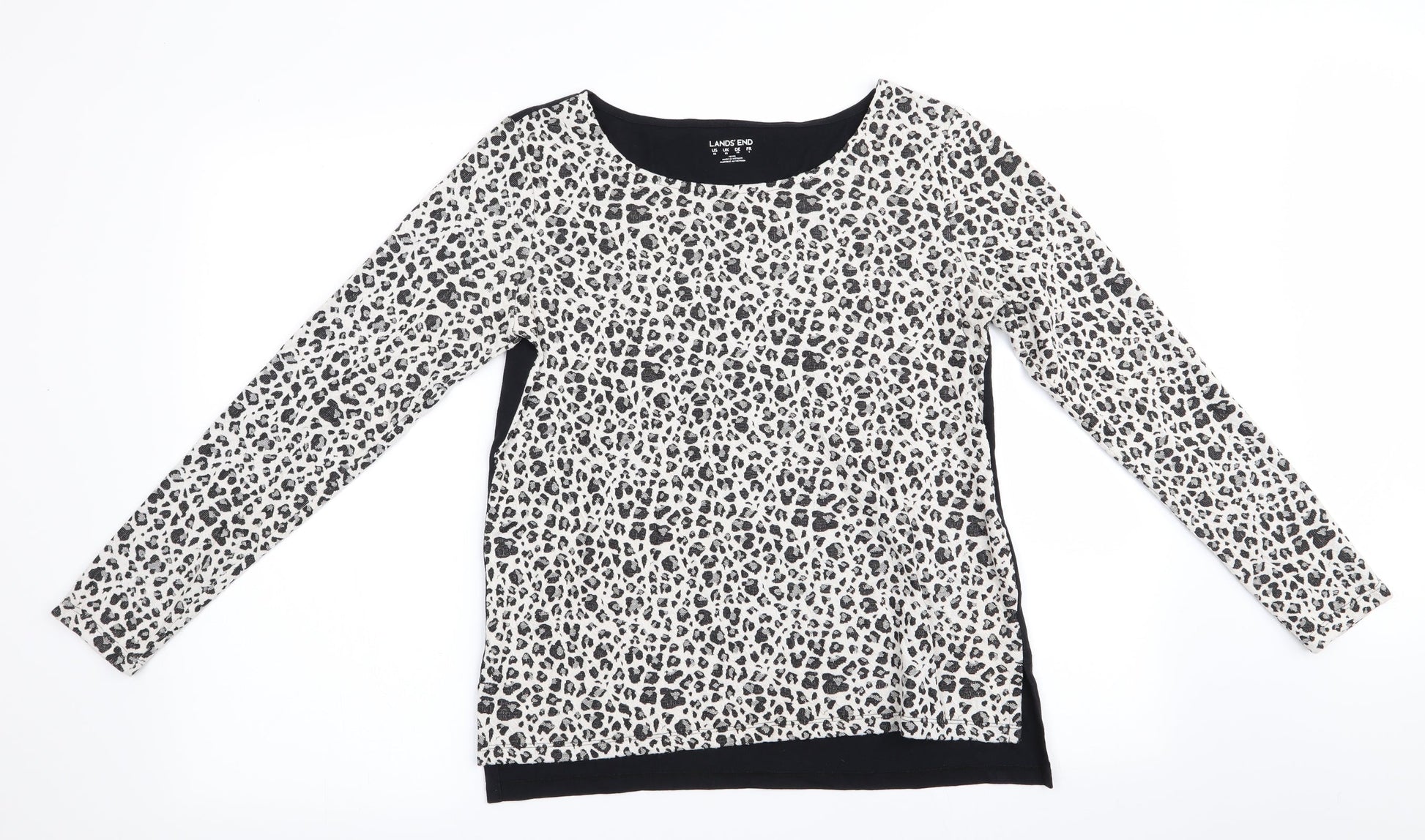 Lands' End Womens White Animal Print Tunic T-Shirt Size XS