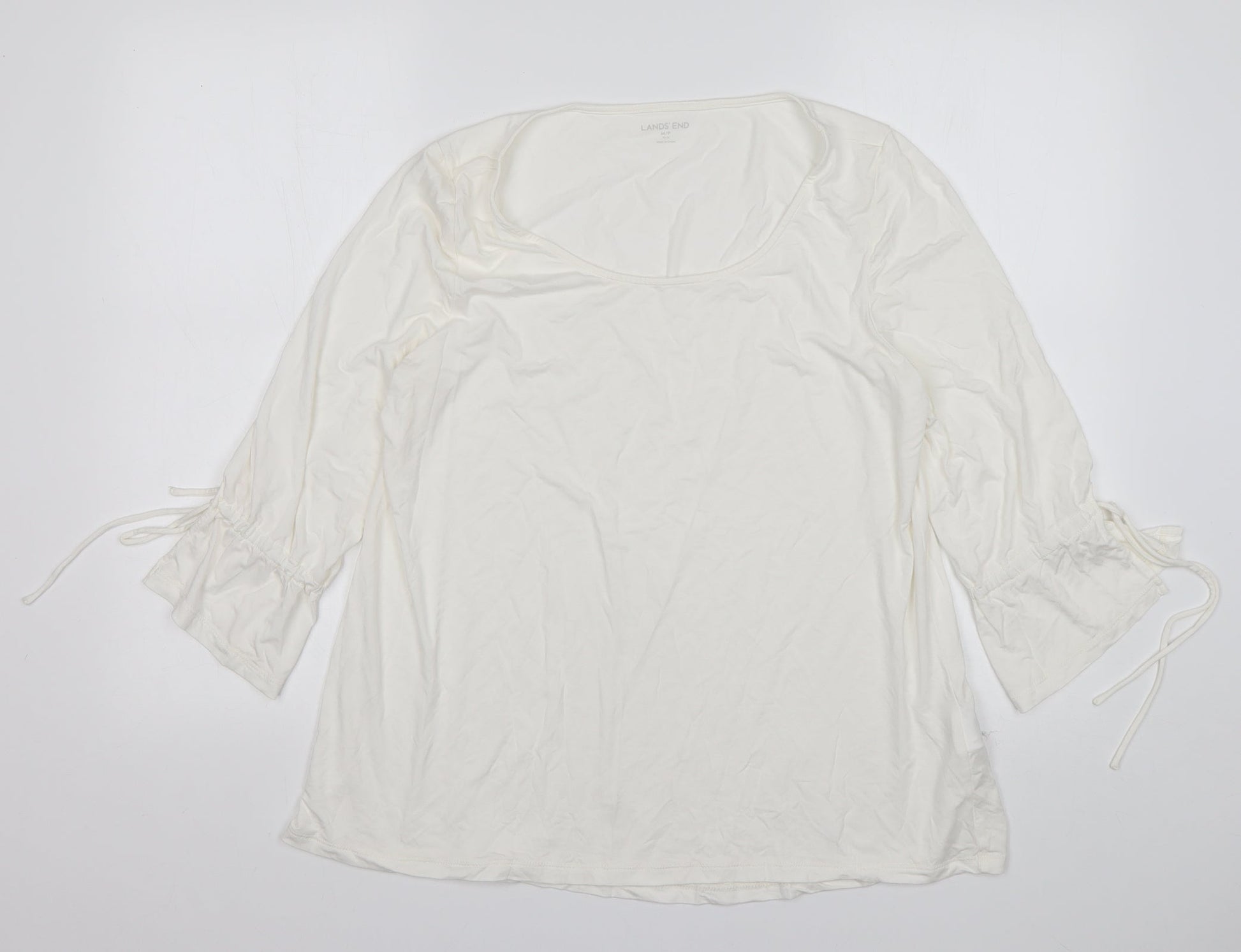 Lands End Womens White Elastane Basic T-Shirt Size M Round Neck