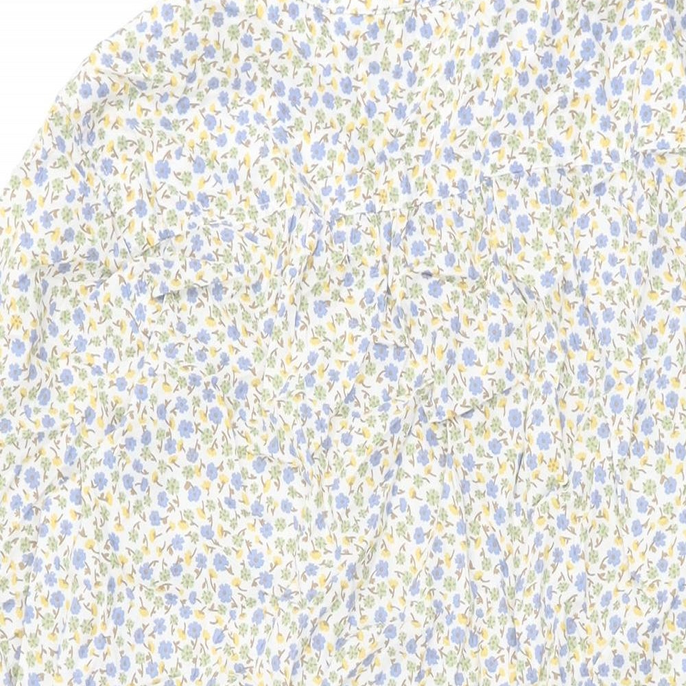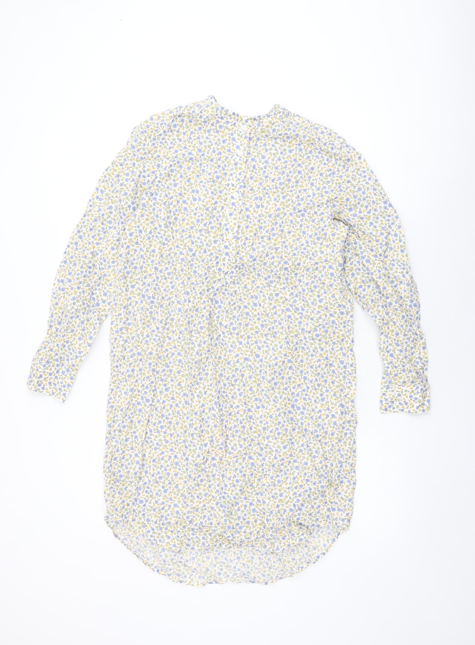 Lands' End Womens White Floral Cotton Shift Size S Round Neck Button
