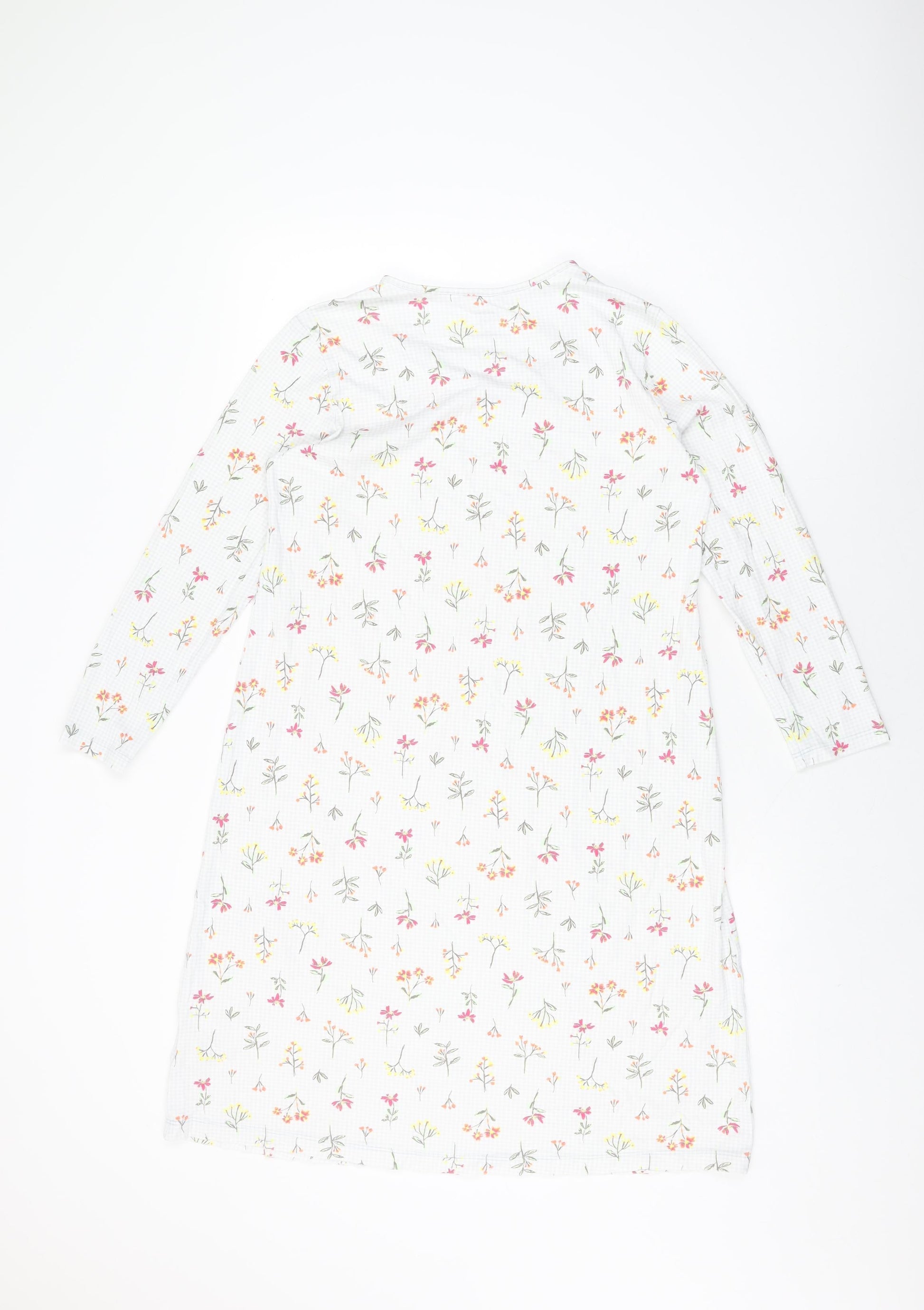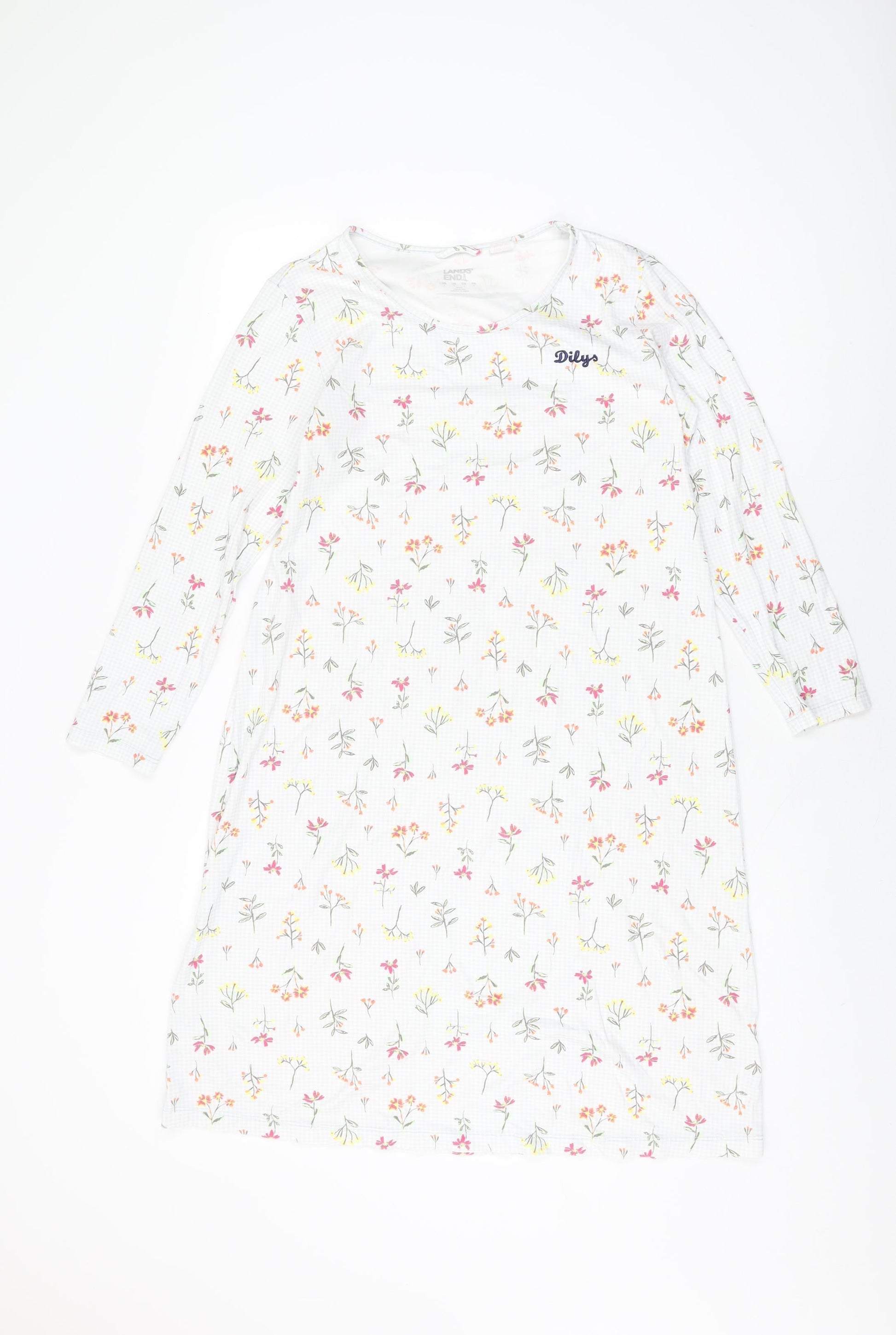 Lands' End Womens White Floral Cotton Shift Size S Round Neck Pullover