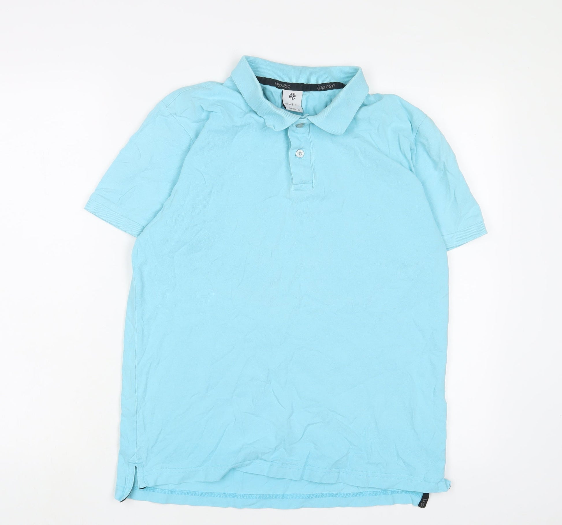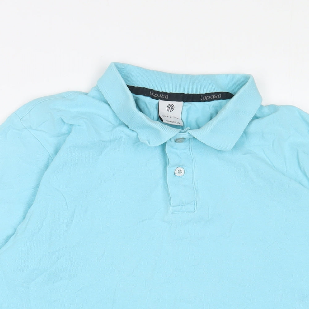 LAPASA Mens Blue Cotton Polo Size M Collared Button