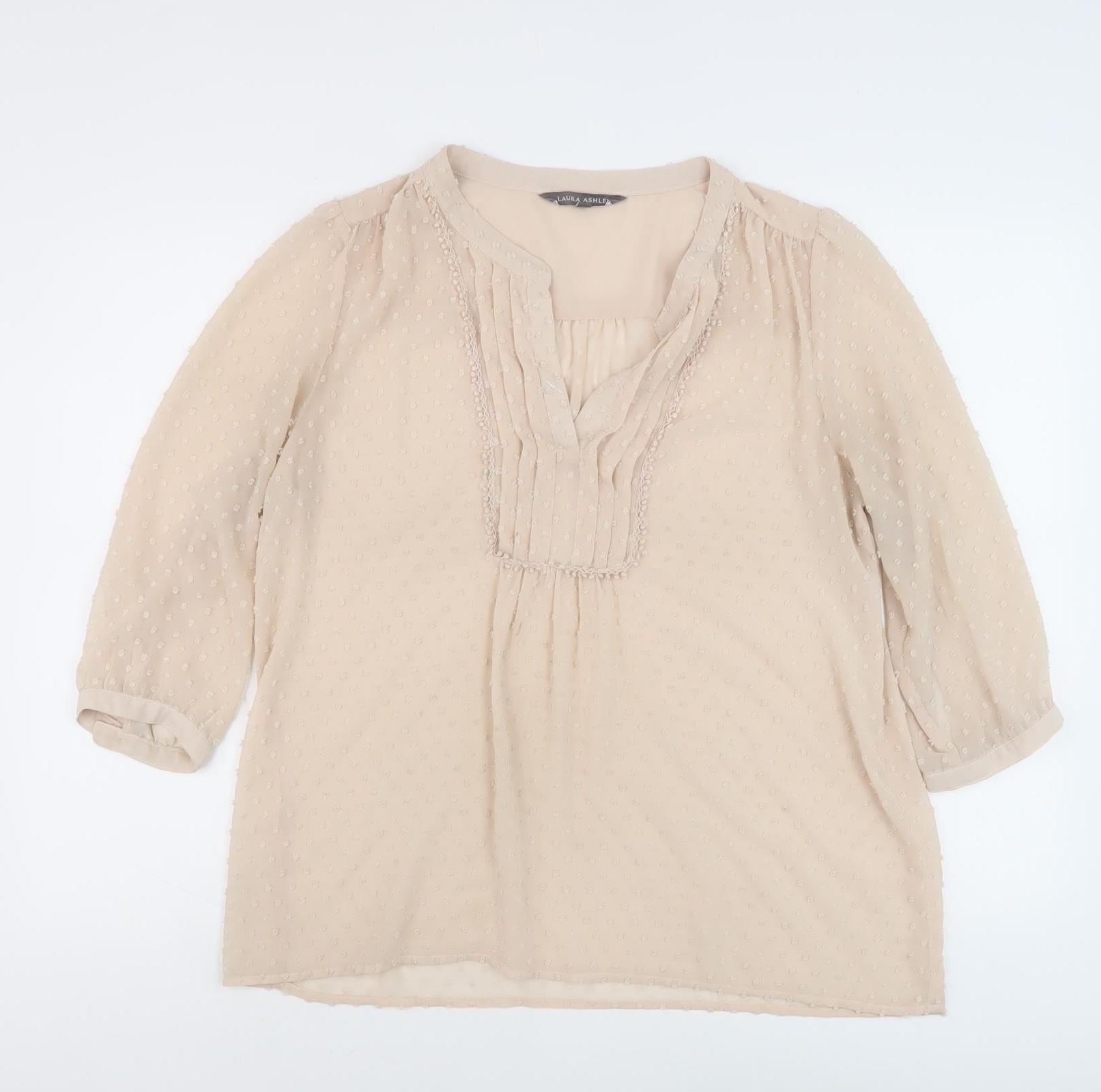 Laura Ashley Beige Blouse Women UK 14 V-Neck 3/4 Sleeve