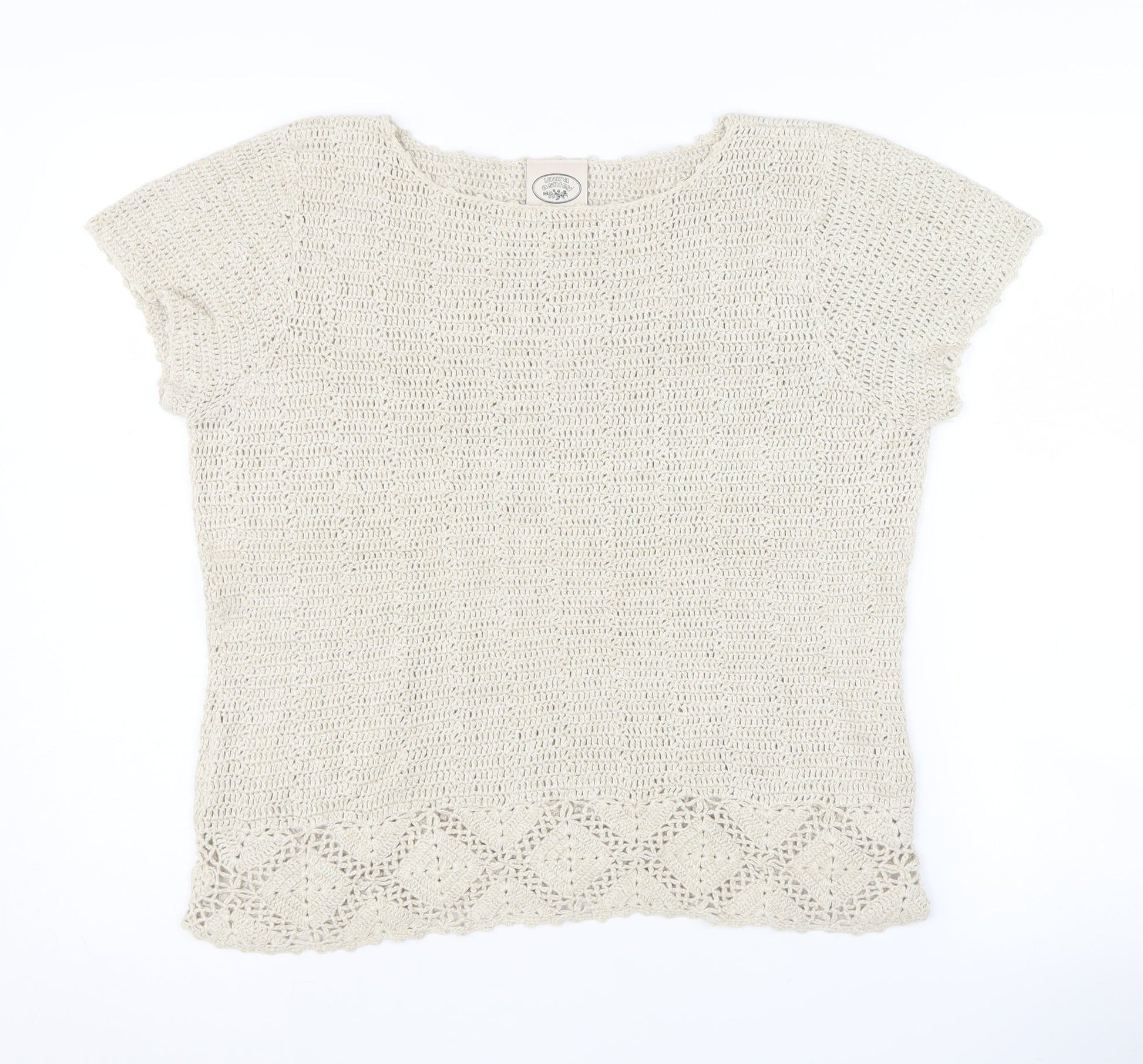 Laura Ashley Beige Open-Knit Pullover Jumper, Size L