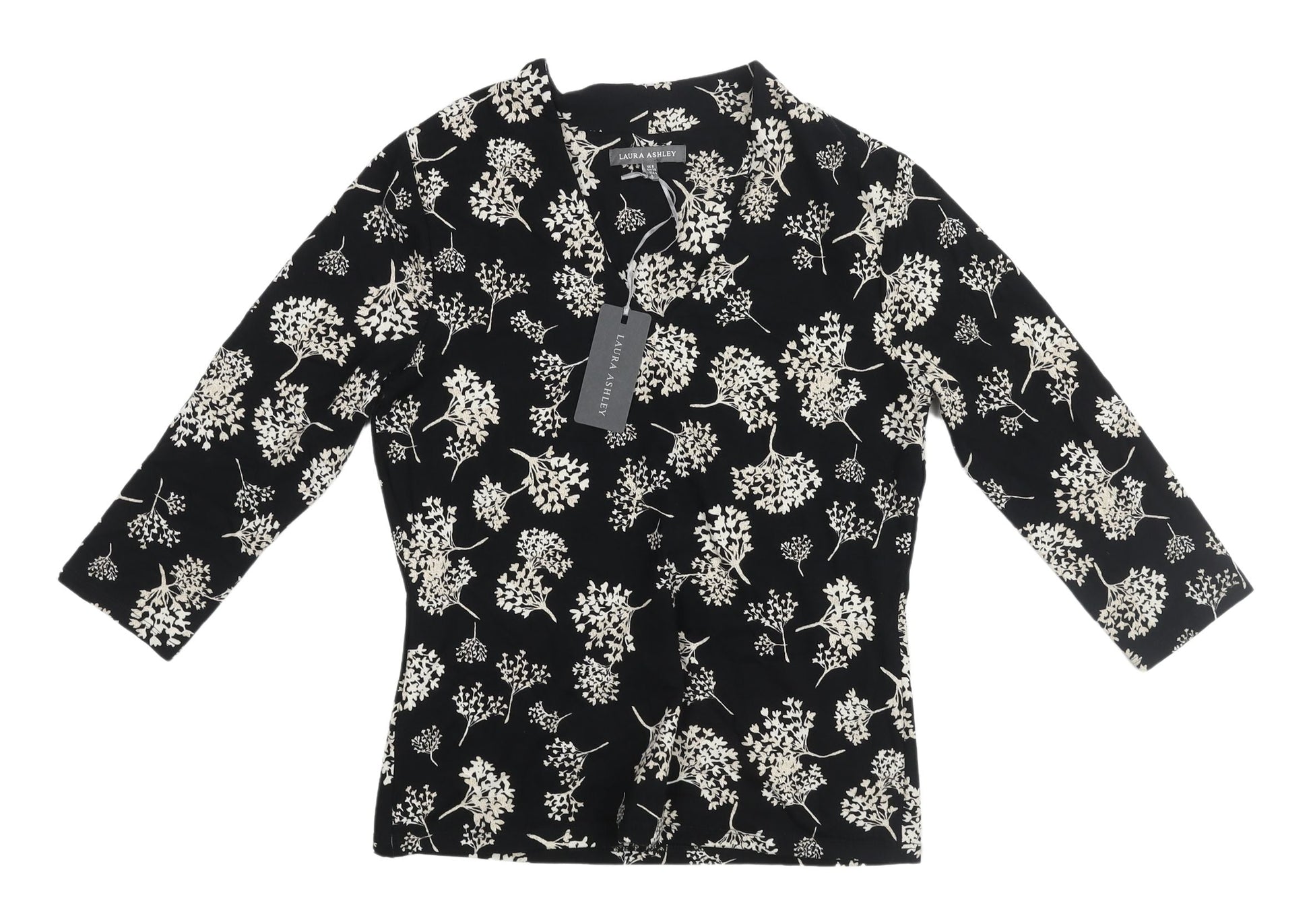 Laura Ashley Black Floral Blouse, Women's Size 8, Viscose Blend