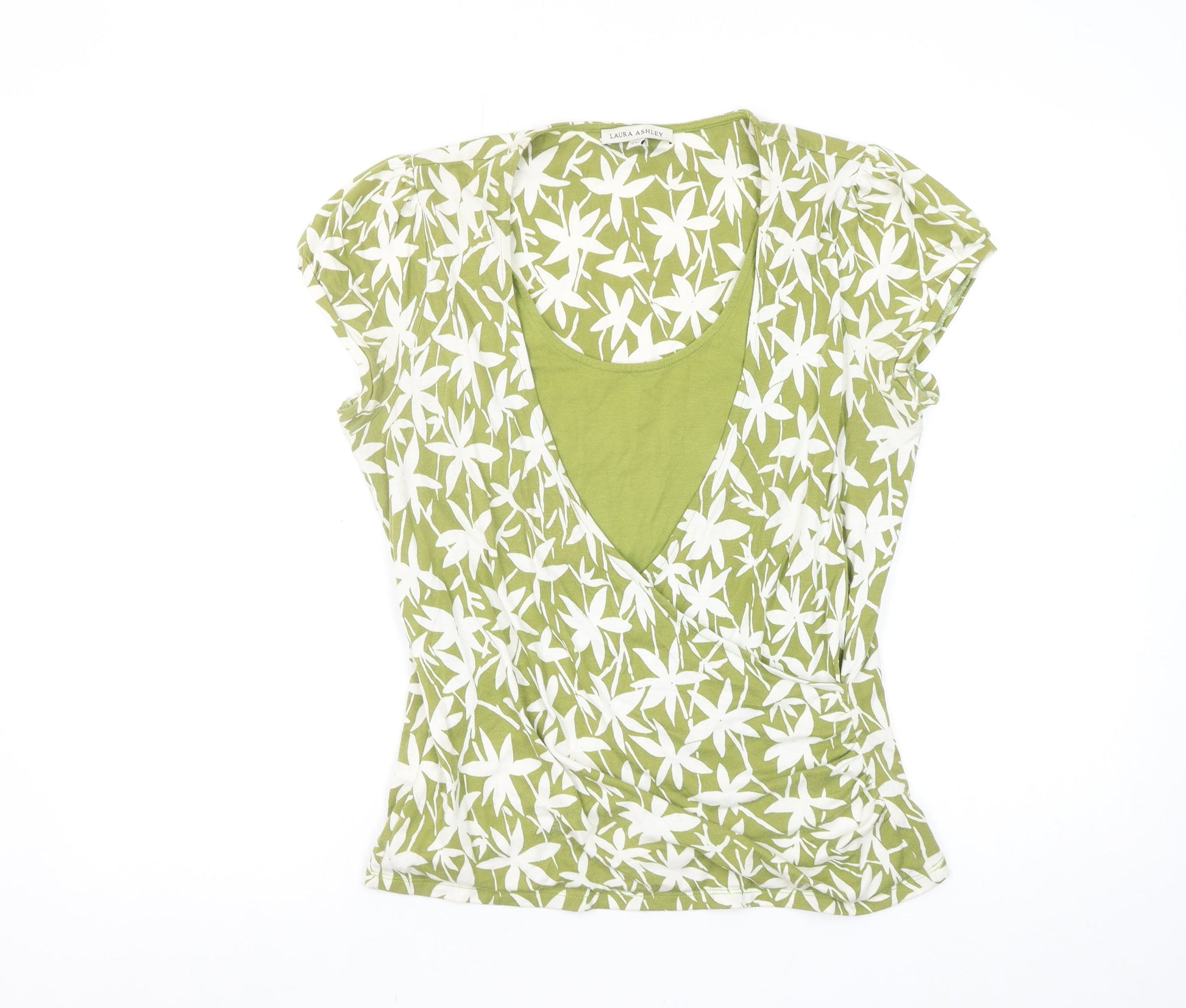 Laura Ashley Women’s Green Floral Wrap T-Shirt Size 14