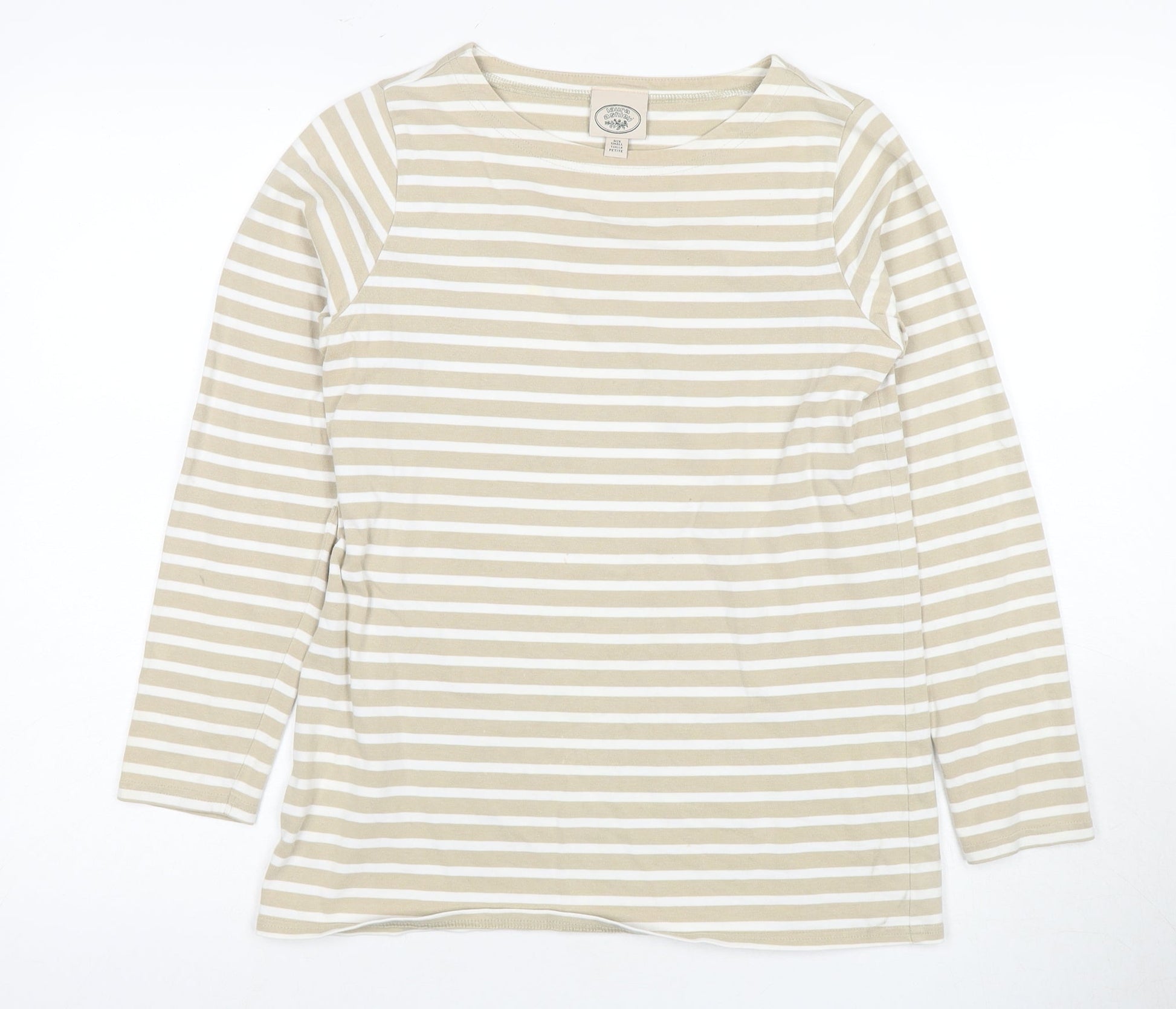 Laura Ashley Women's Beige Striped T-Shirt, Small, Petite