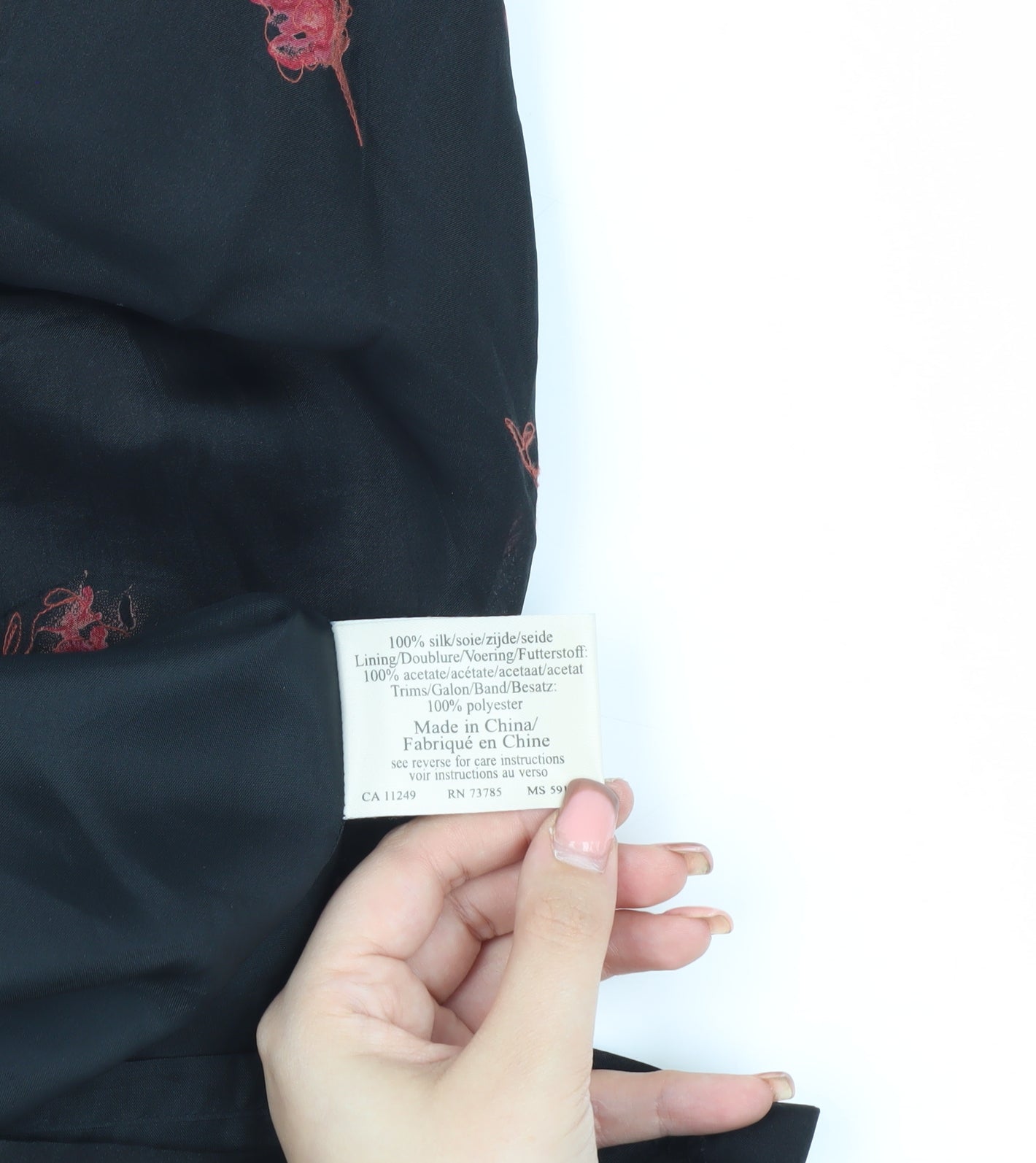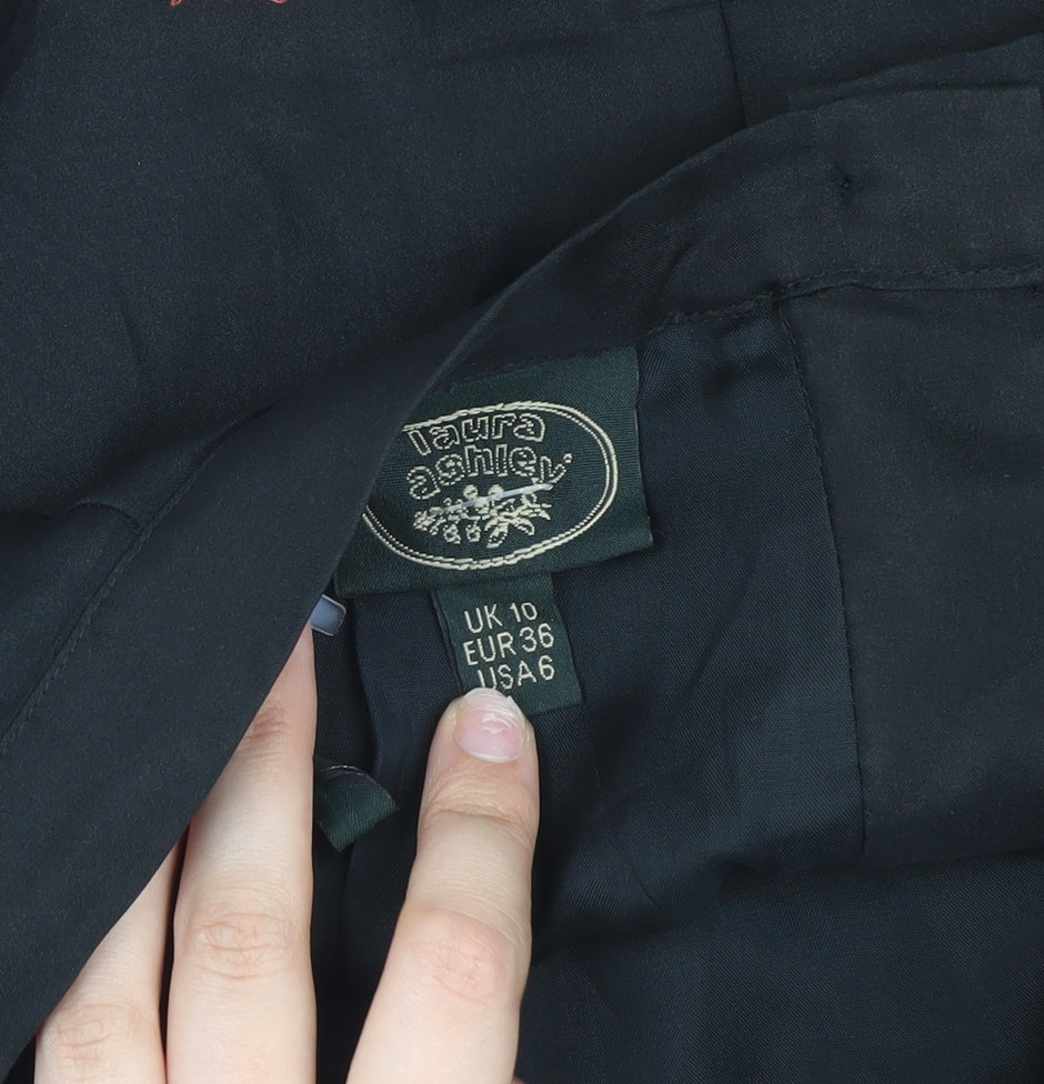 Laura Ashley Women's Black Floral Silk Pencil Skirt Size 10