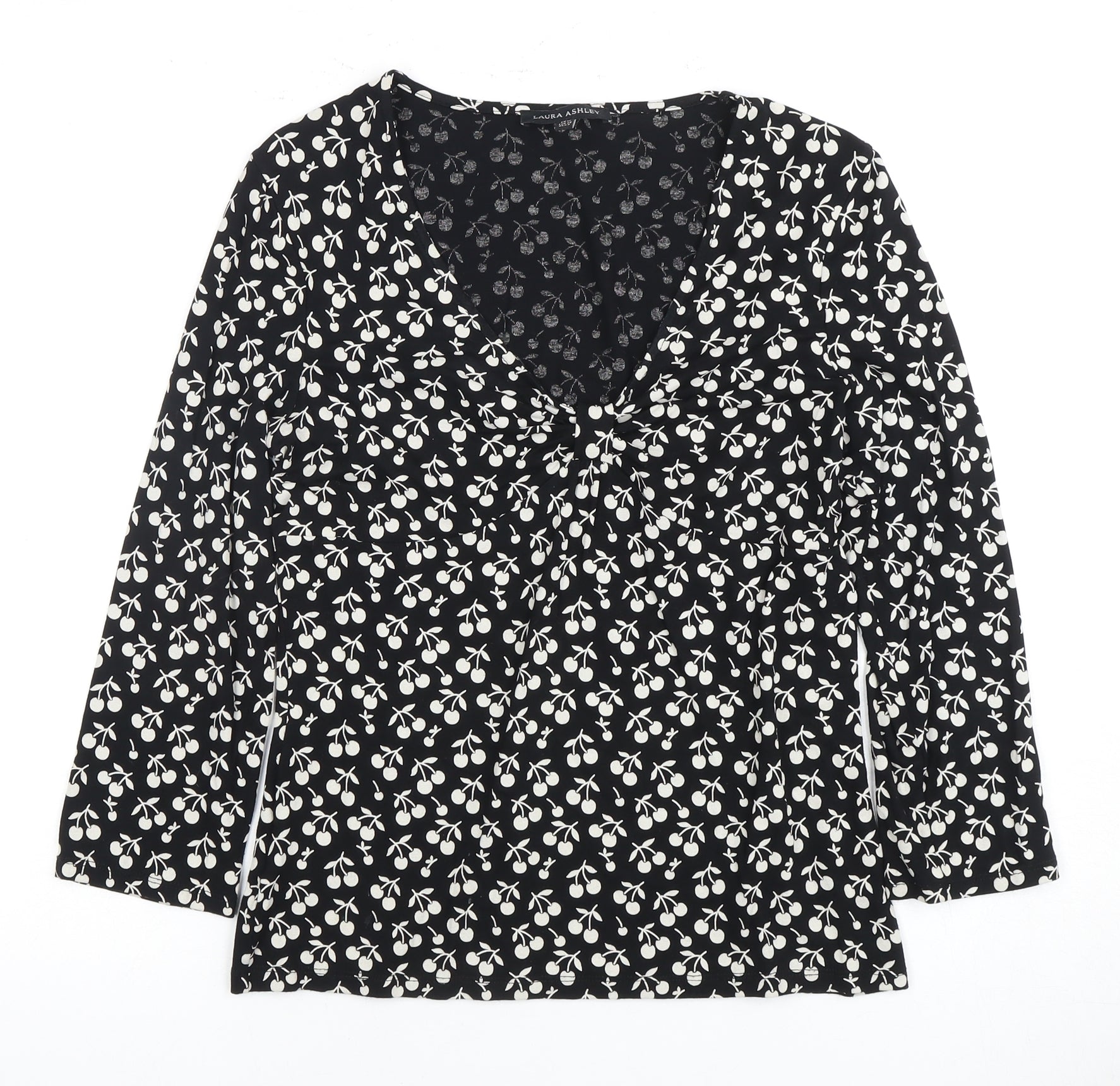 Laura Ashley Women's Black Floral V-Neck Blouse Size 12