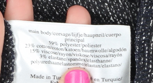 - Material Breakdown: 59% Polyester 23% Cotton 15% Viscose 3% Elastane