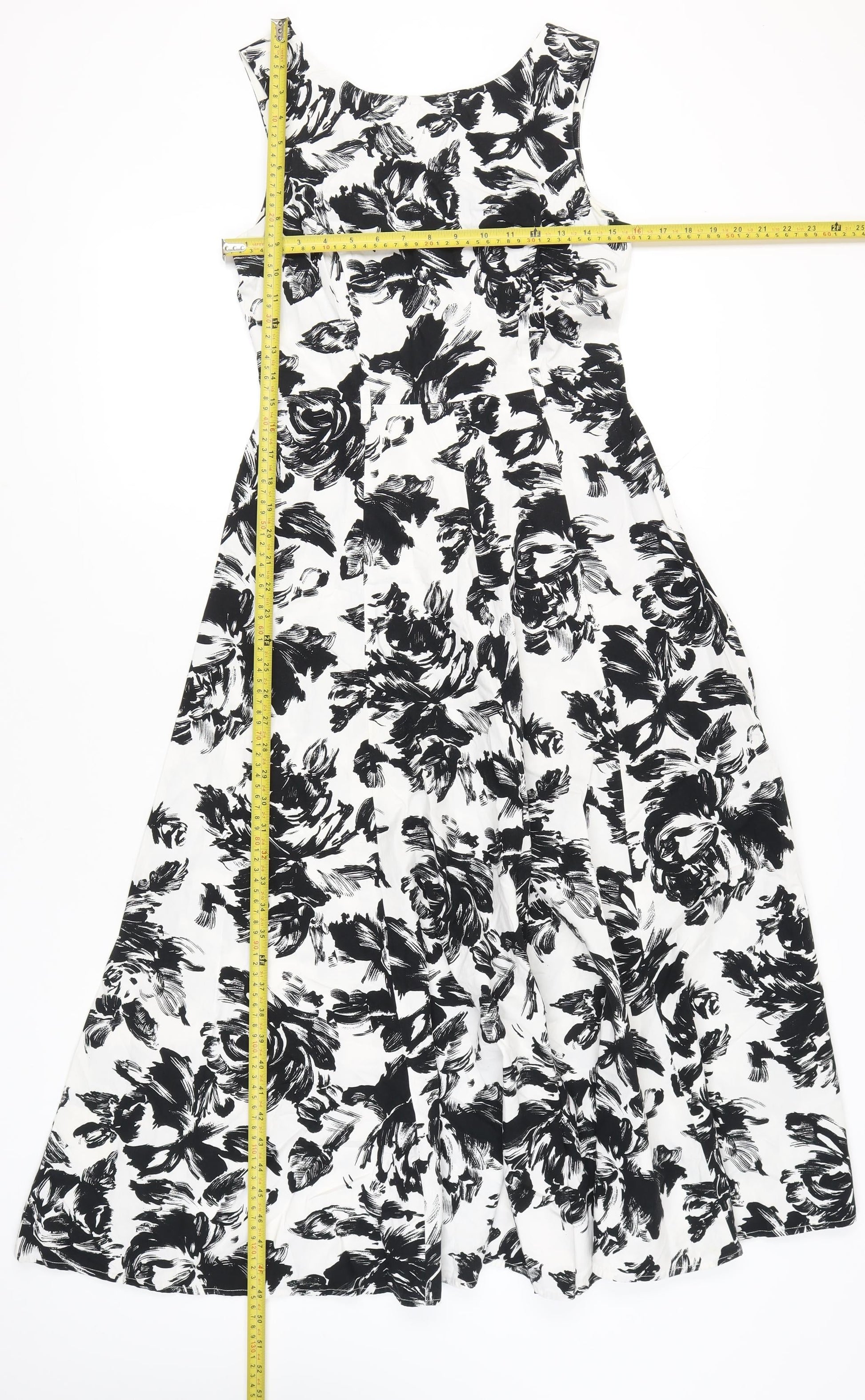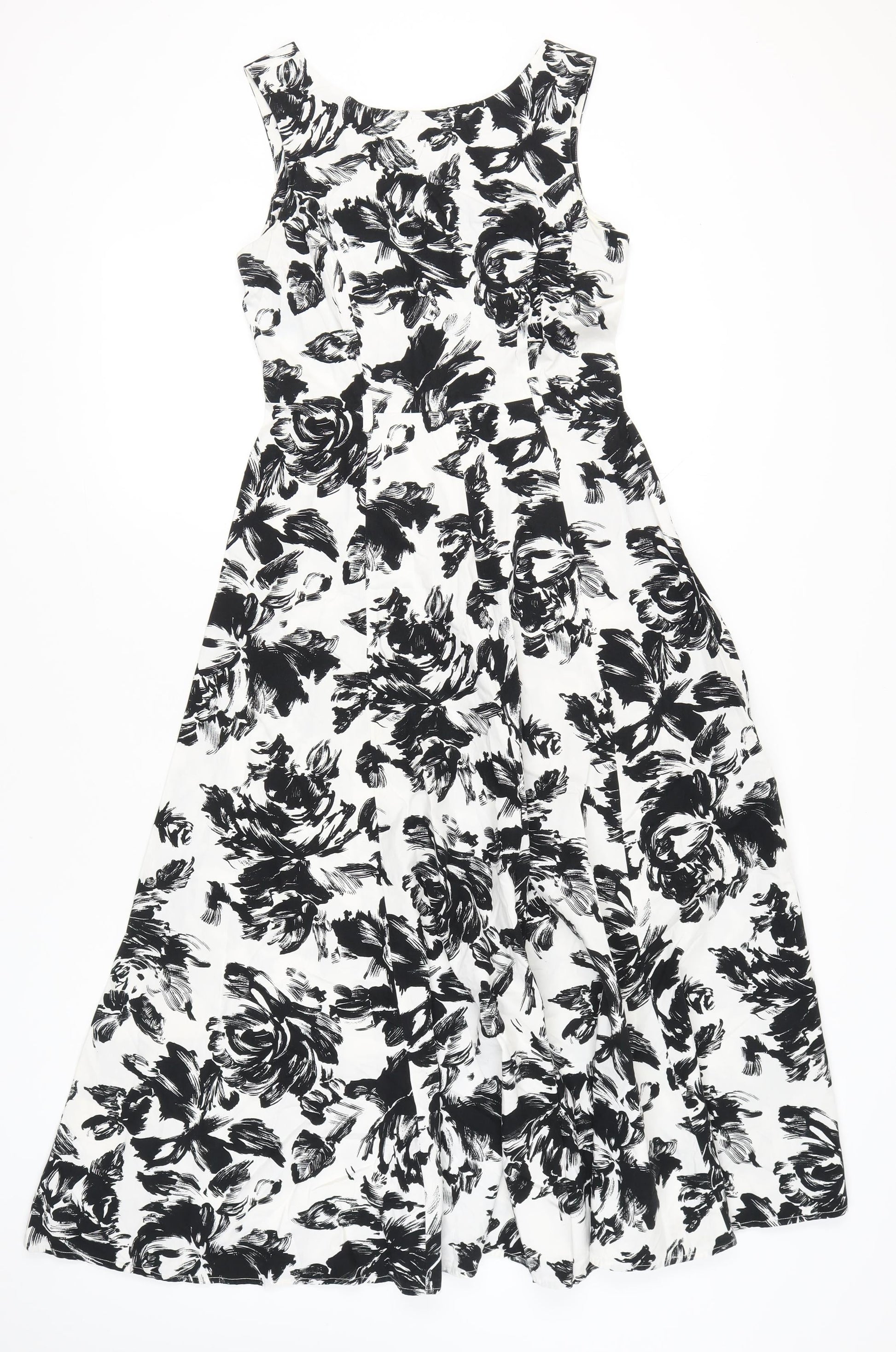Laura Ashley Womens Black White Floral Midi Dress Size 12