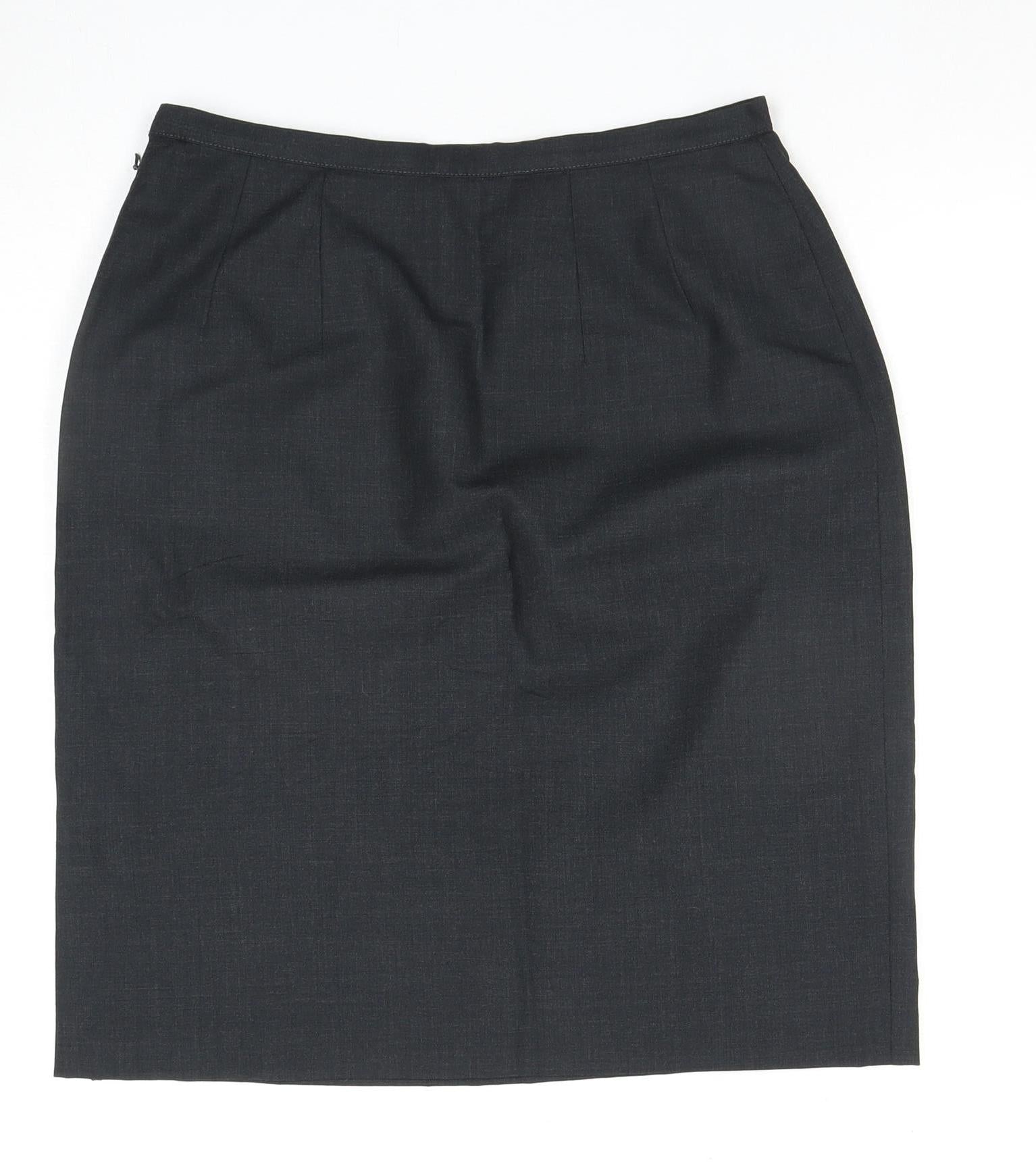 Laura Ashley Women's Black Wool Pencil Skirt, Size 14