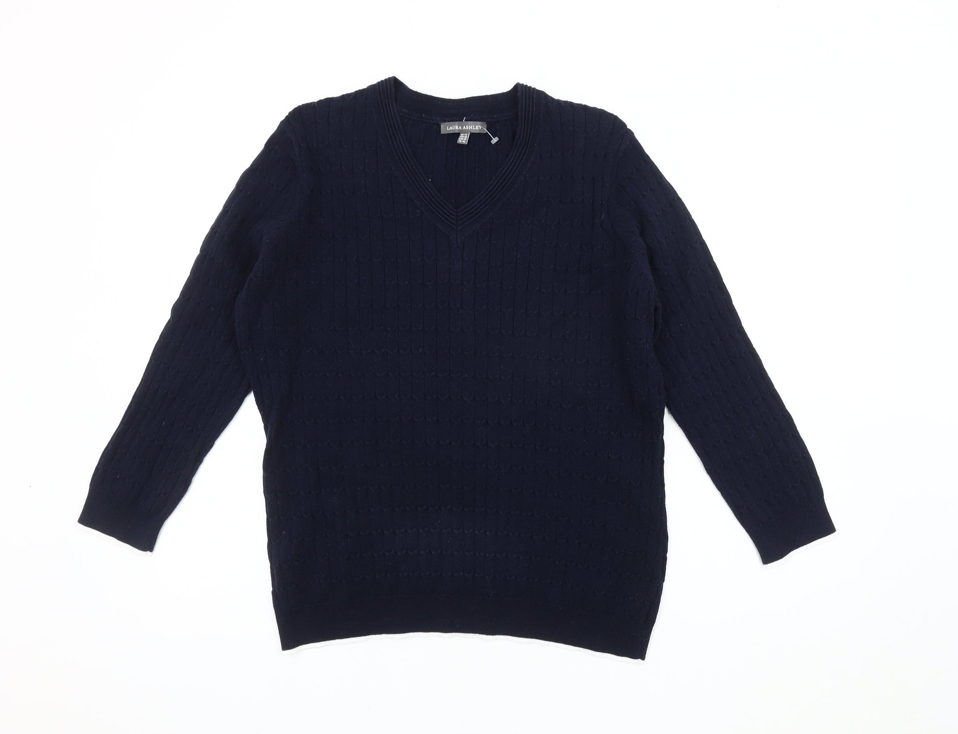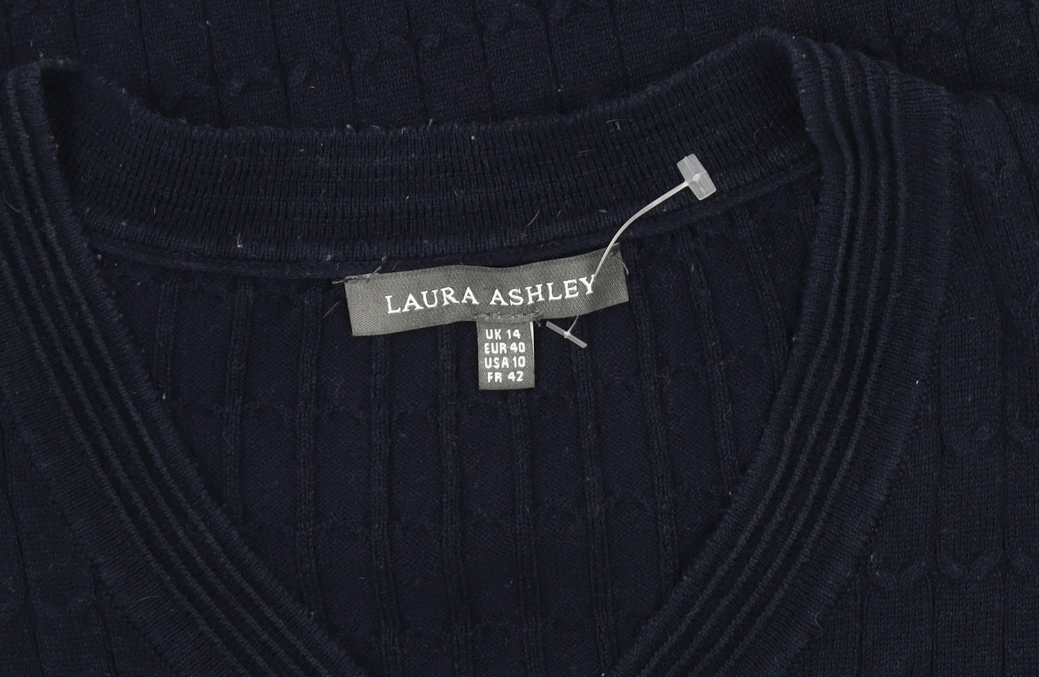 Laura Ashley Women's Blue Cable-Knit Jumper Size 14 Regular
