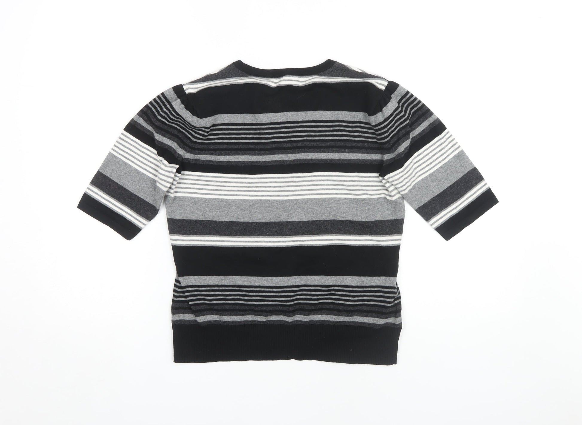 Laura Ashley Women's Cardigan, Size 10, Black, Striped Knit