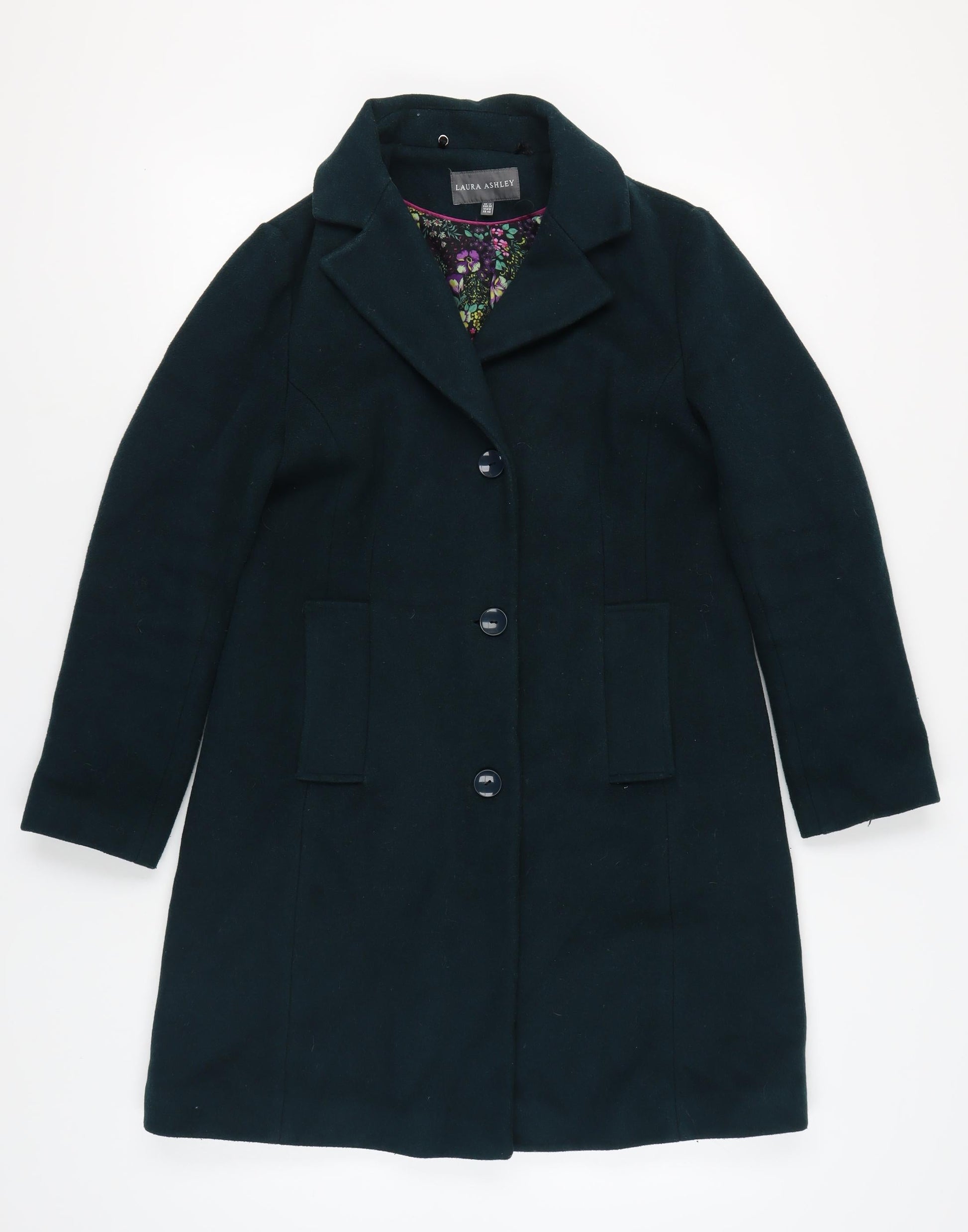 Laura Ashley Women's Green Coat, Size 12, Mid-Length, Buttoned