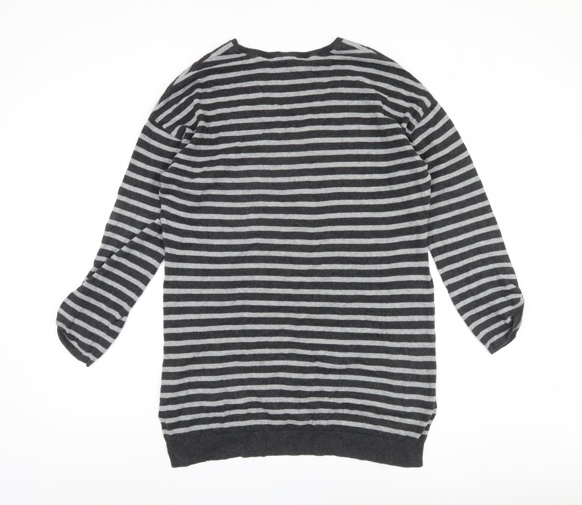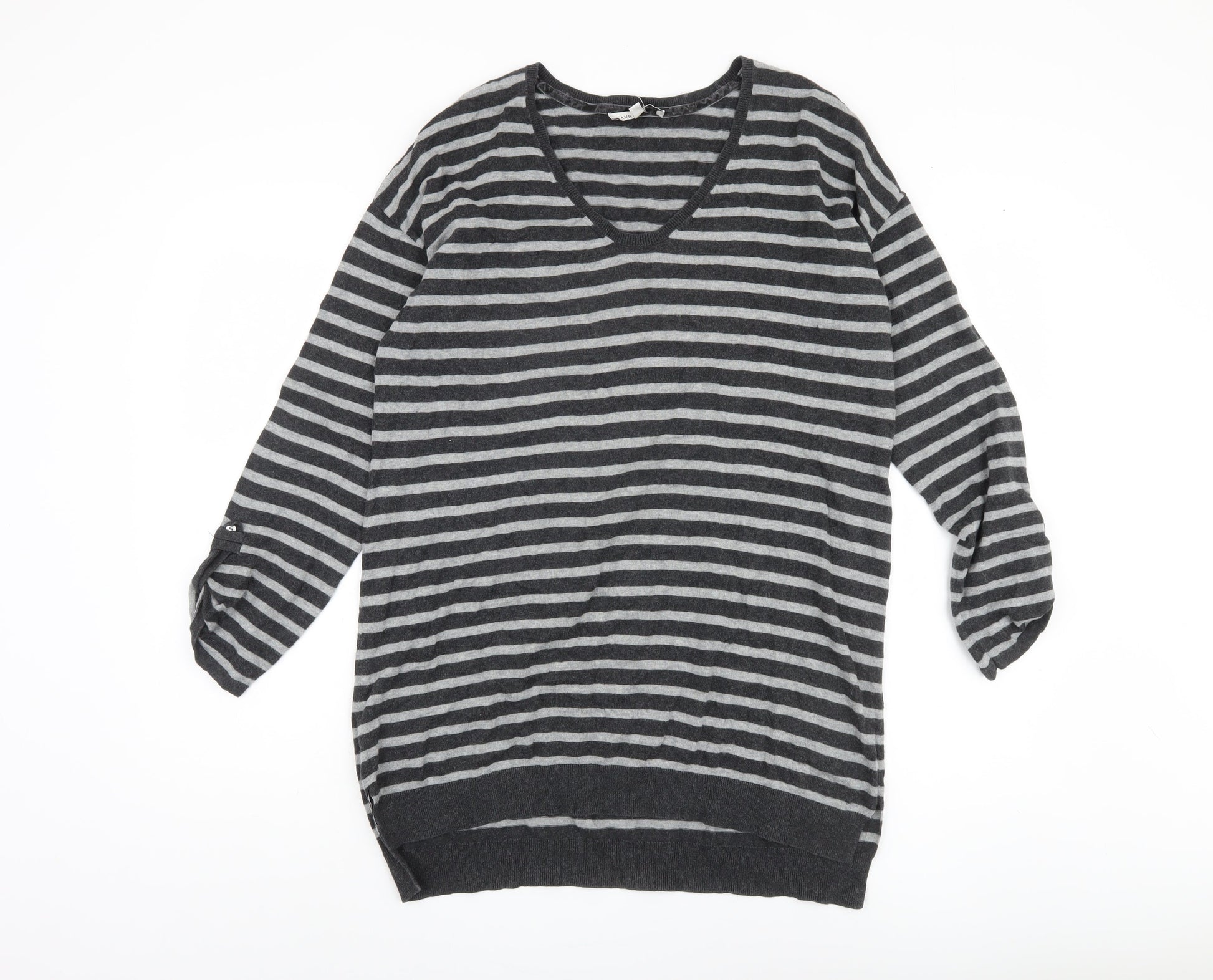 Laura Ashley Women's Grey Striped Pullover Jumper Size 14