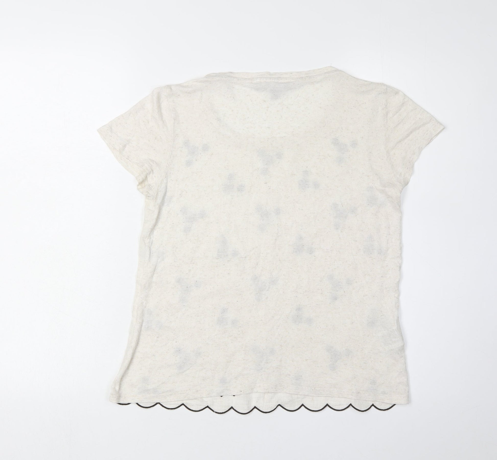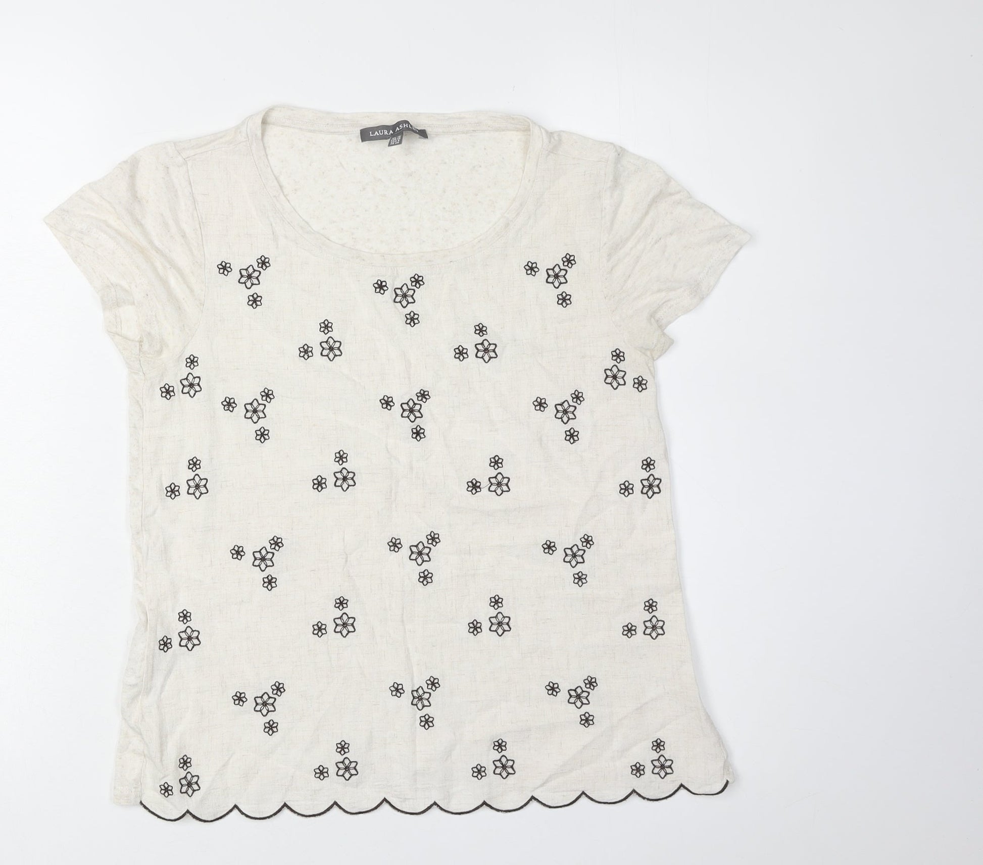 Laura Ashley Women's Ivory Floral Embroidered T-Shirt Size 10