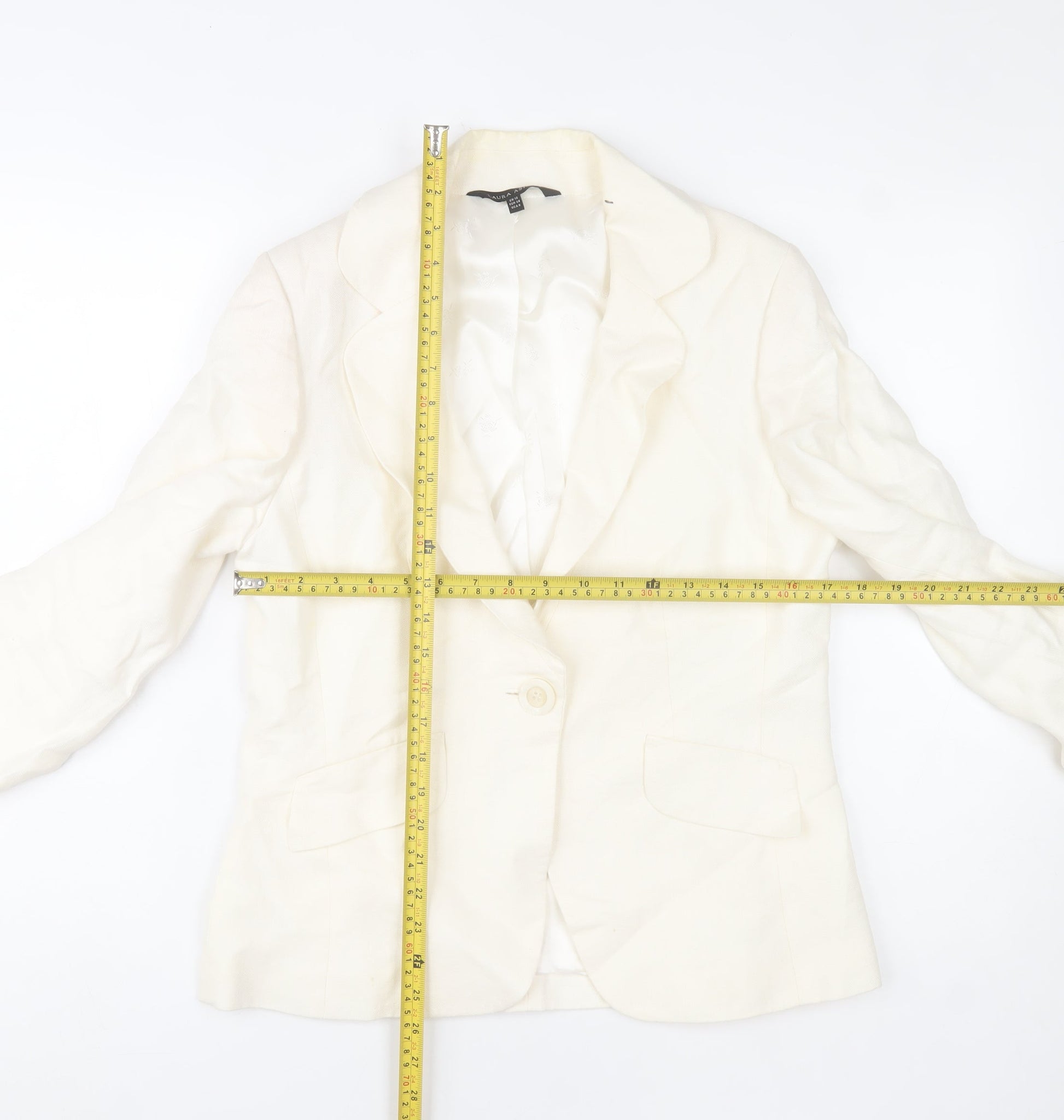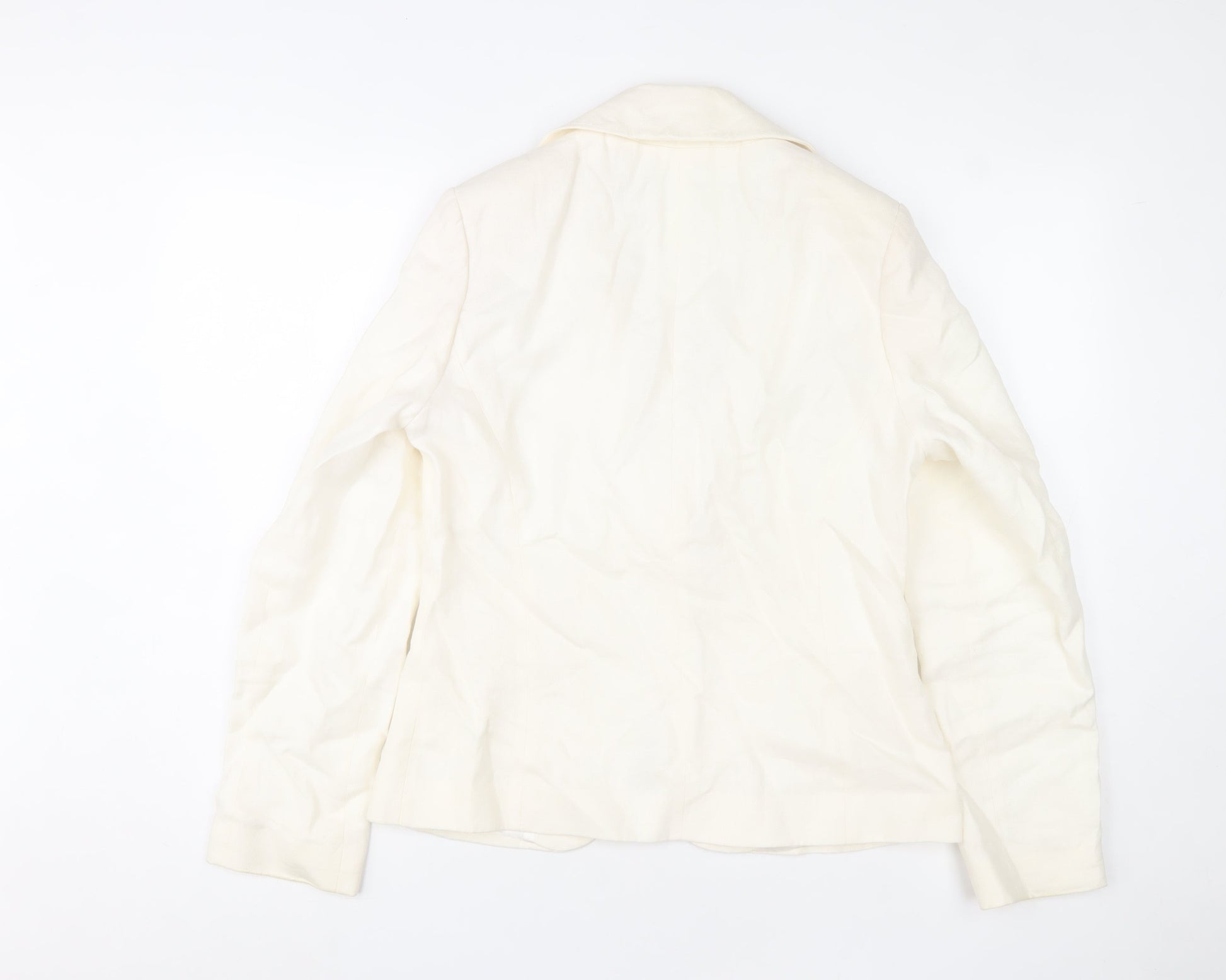 Laura Ashley Women's Ivory Linen Blazer UK 12 Lined Single-Breasted Jacket